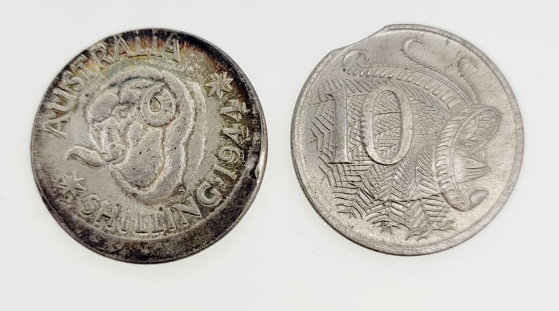 2X AUSTRALIAN ERROR COINS INCLUDES 1944 ONE SHILLING AND 1973 TEN CENT COIN