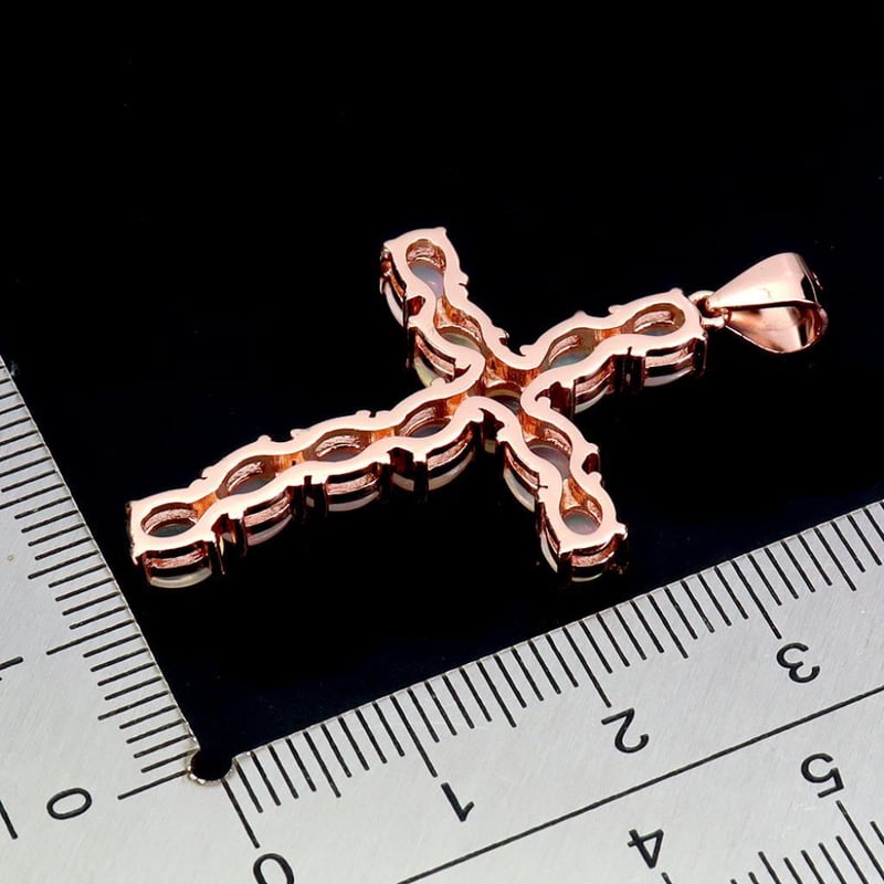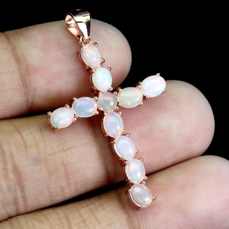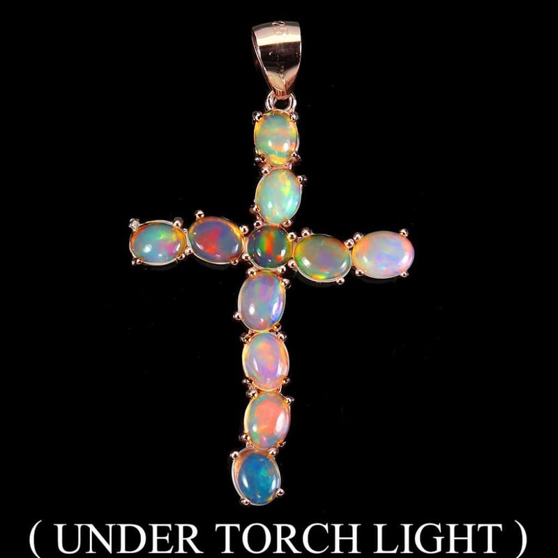 Natural Rainbow Fire Opal Cross Pendant. Made In Solid Sterling Silver And Plated In14K Rose Gold. Feature Natural Rainbow Opals. Pendant Measures 41.0 X 24.0 Mm.