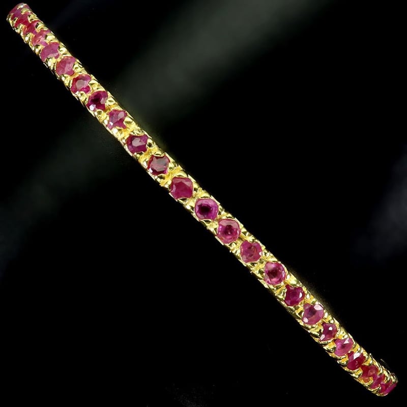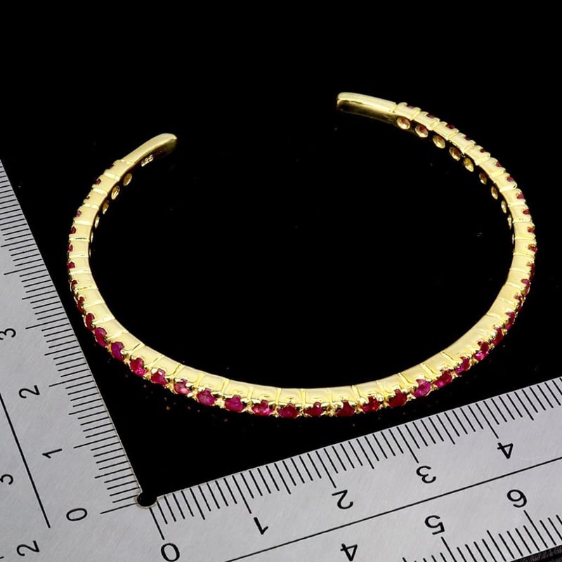 NATURAL RUBY BANGLE. Natural Ruby Bangle. Made In Solid Sterling Silver And Plated In 14K Yellow Gold. Features Natural Red Rubies. Bangle Measures 6.2 Inches. Condition: Good - Refer Images 0488314+3
