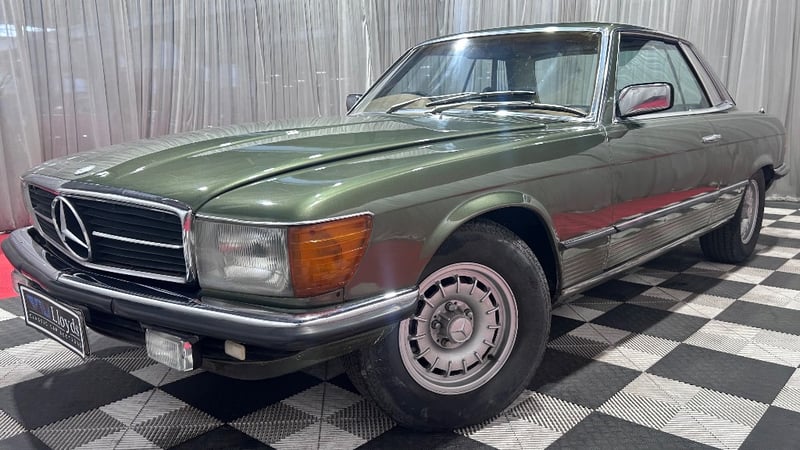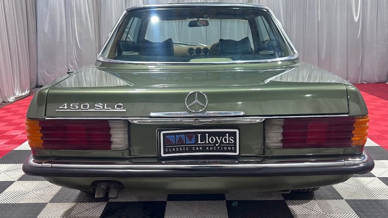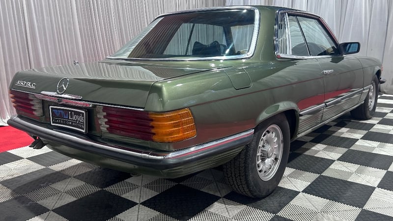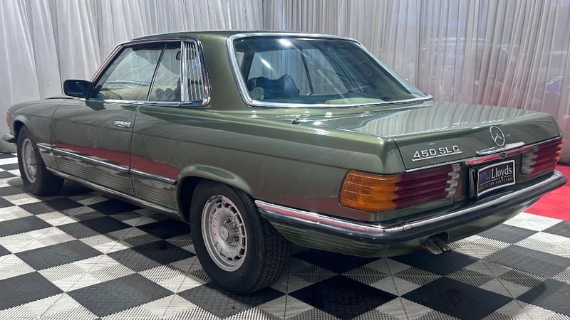 A classic 1978 Mercedes-Benz 450SLC finished in Green, powered by a 4.5-litre V8 petrol engine paired with an automatic transmission. Rear-wheel drive, four-seat configuration, odometer indicating 180,840 kilometres.