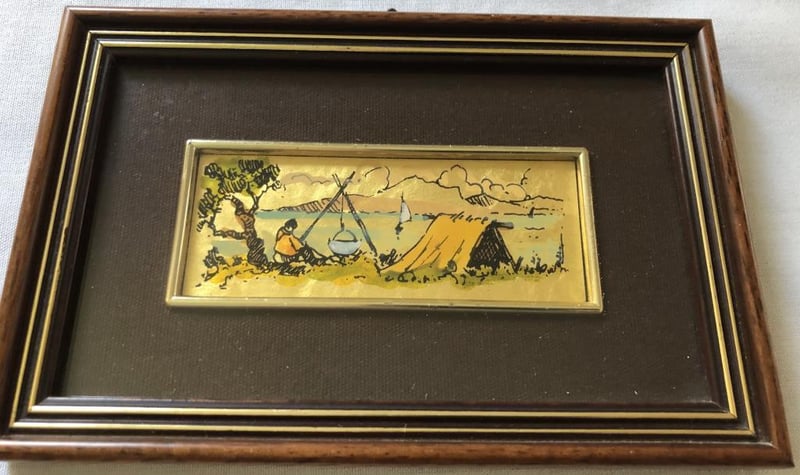 HAND PAINTED PICTURE FAUX GOLD LEAFHand Painted Picture On 900 Faux Gold Leaf, Made Italy, 16Cm X 10Cm X 1.5Cm (1980'S)584979+28