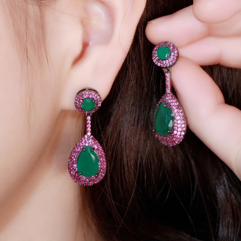 TWO PAIRS OF 925 SILVER EARRINGS Item - 1Color : GreenNotes : Stamped With 925 HallmarkCondition : GoodNote : 18K Gold PlatingRef: 488980_65Item - 2Color : Red, GreenNotes : Stamped With 925 HallmarkCondition : GoodNote : 18K Gold PlatingRef: 488980_66 Condition: Good - Refer Images 0488981+11