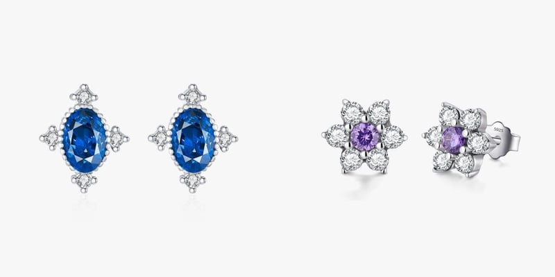TWO PAIRS OF 925 SILVER STUD EARRINGS Item - 1Color : BlueNotes : Stamped With 925 HallmarkCondition : GoodNote : 18K Gold PlatingRef: 488980_193 Item - 2Color : PurpleNotes : Stamped With 925 HallmarkCondition : GoodNote : 18K Gold PlatingRef: 488980_194 Condition: Good - Refer Images 0488981+36