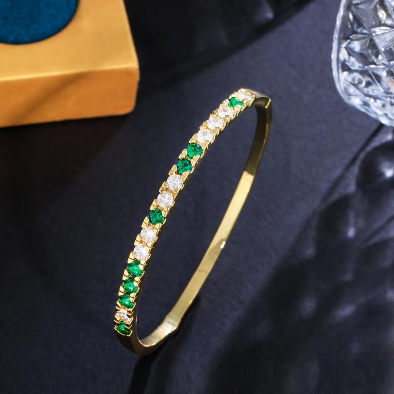 925 SILVER CUFF BANGLE Color : GreenNotes : Stamped With 925 HallmarkCondition : GoodNote : 18K Gold PlatingRef: 488980_105 Condition: Good - Refer Images 0488981+65
