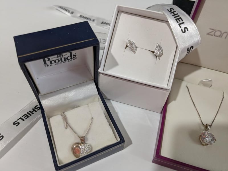 STERLING SILVER PENDANTS & EARRINGS IN DISPLAY BOXES
