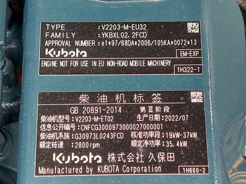 Engine: 4 Cylinder, Diesel, Kubota