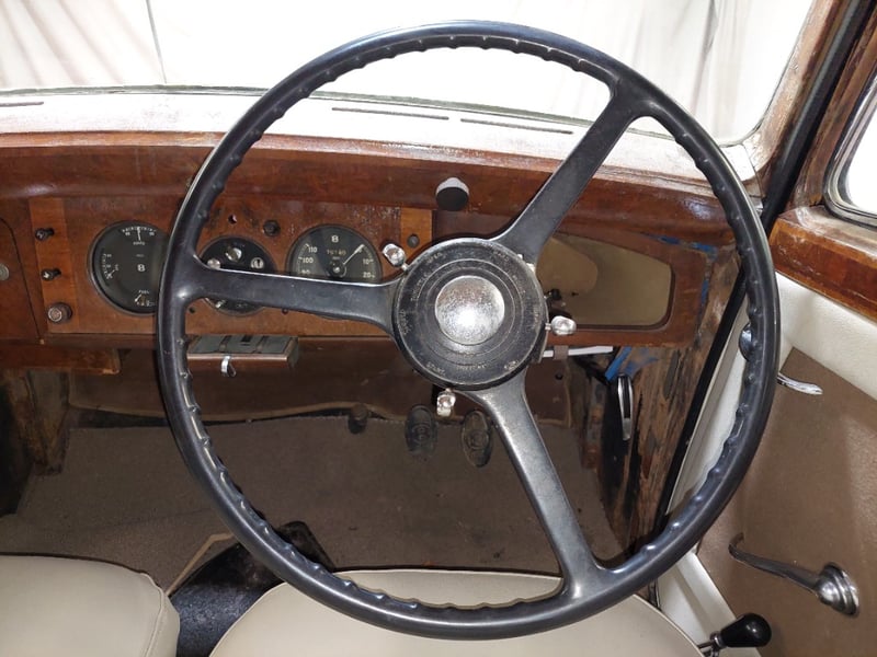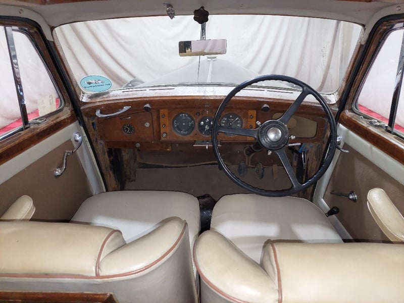 This post-war Bentley presents as a largely complete and original steel saloon, showing honest age throughout. Originally purchased as a rolling chassis for a custom-body project, the vehicle does crank and start. The engine and mechanicals were previously reported to be in good running condition, offering a solid foundation for restoration or custom coachwork. Previous South Australian registration SA 8156 (expired 1973).