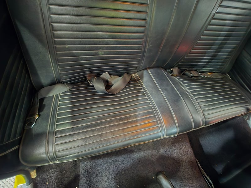 The vehicle is equipped with SSBC front brakes, a 12-bolt rear end with 3.73 Posi gearing, and a Rock Crusher gear set. The interior retains original styling with four seats, and the car includes the original owner’s manual.