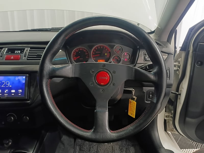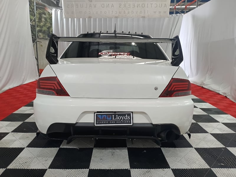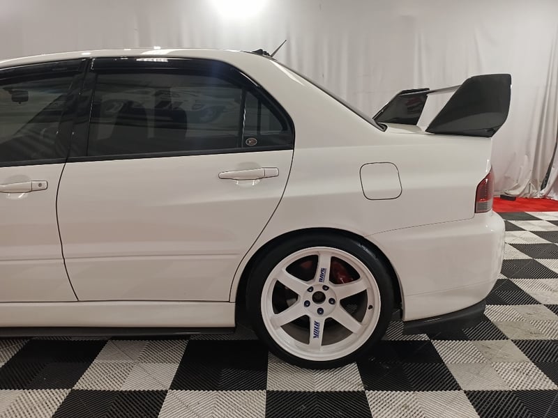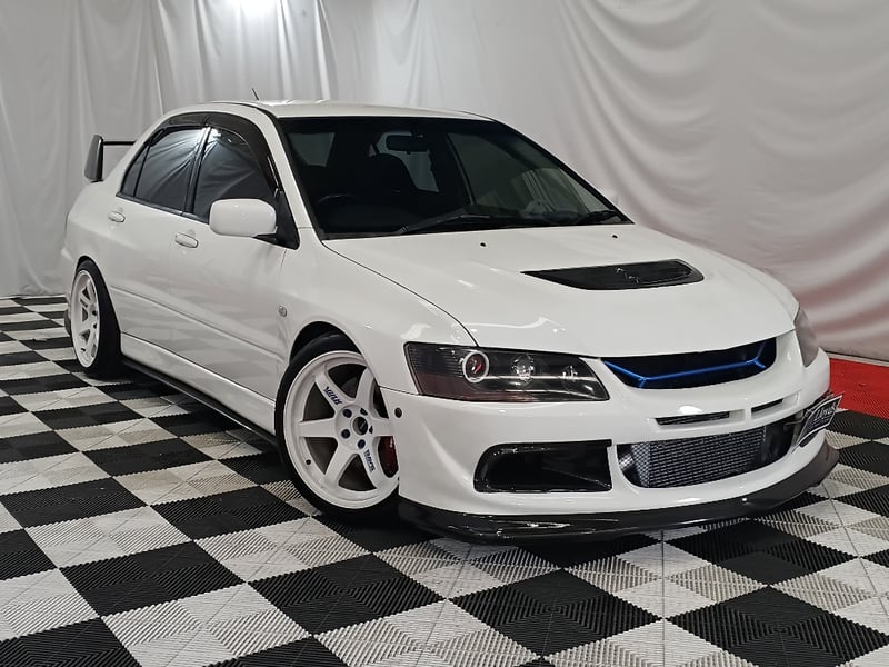 A 2004 Mitsubishi Lancer Evo VIII finished in White, presenting as a highly modified and performance-focused example of Mitsubishi’s iconic rally-inspired sedan. The vehicle is equipped with an odometer reading of 198,575 kilometres.