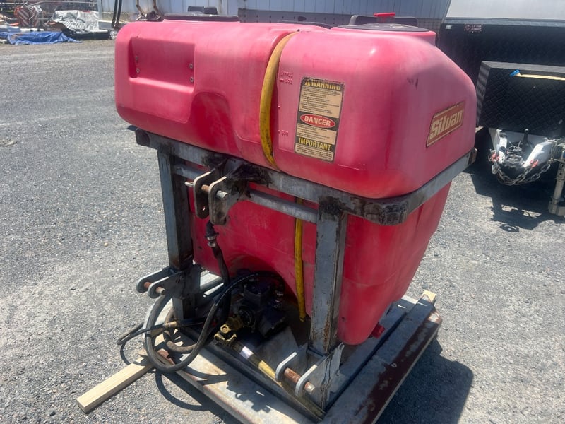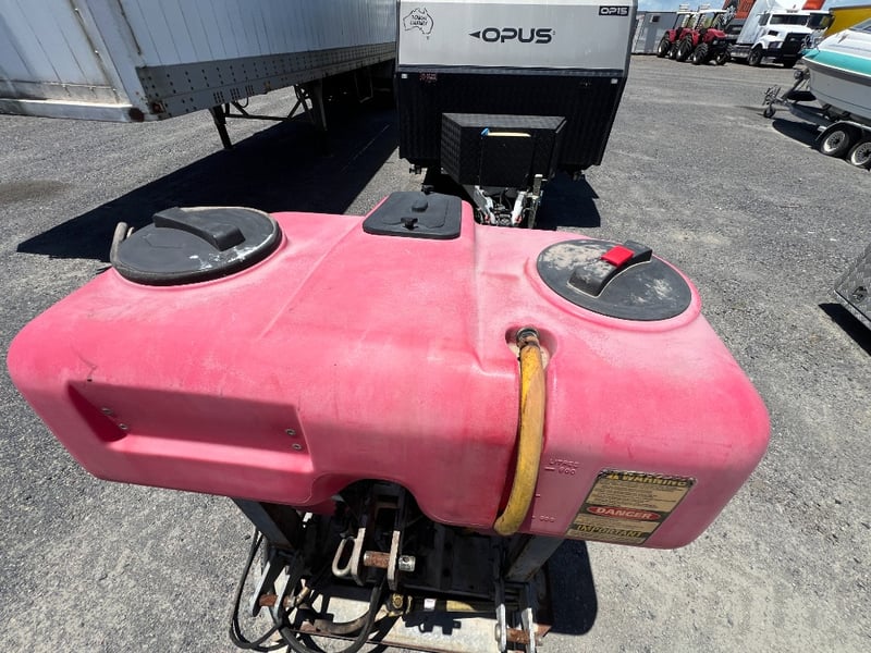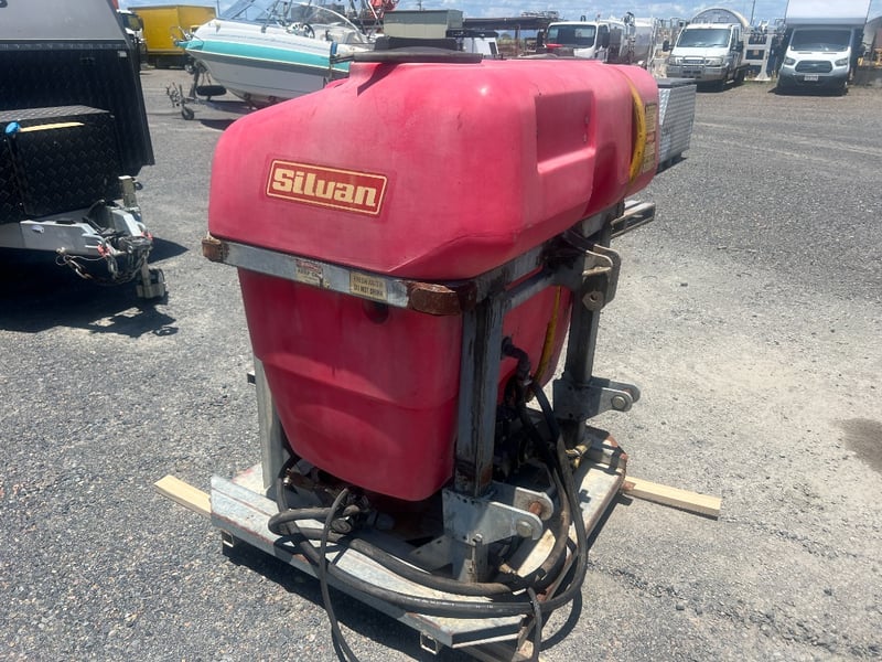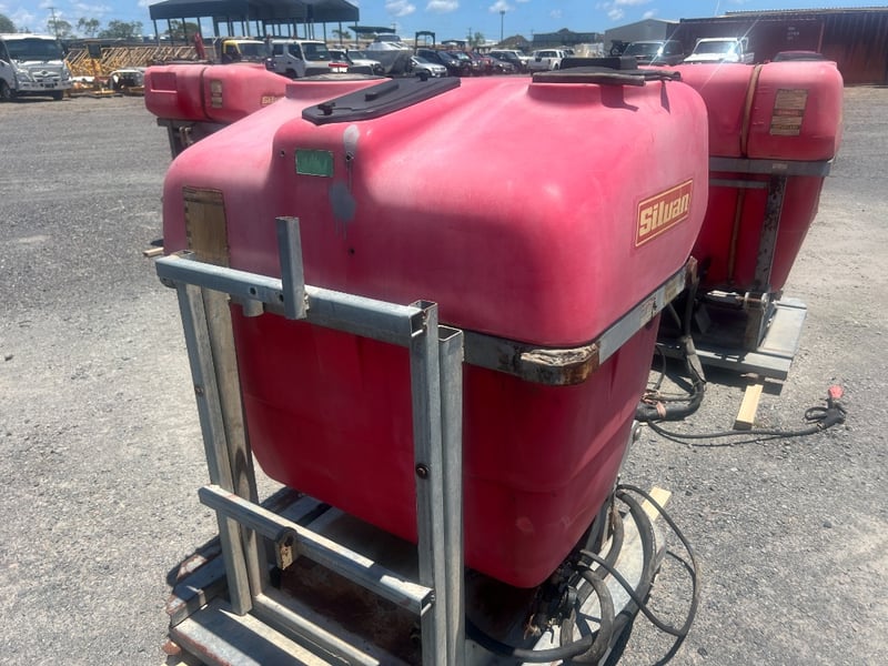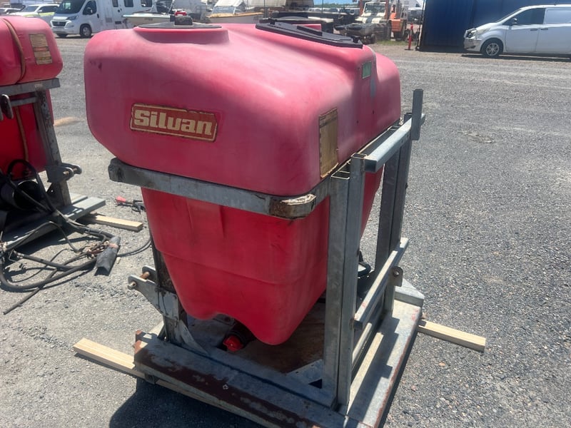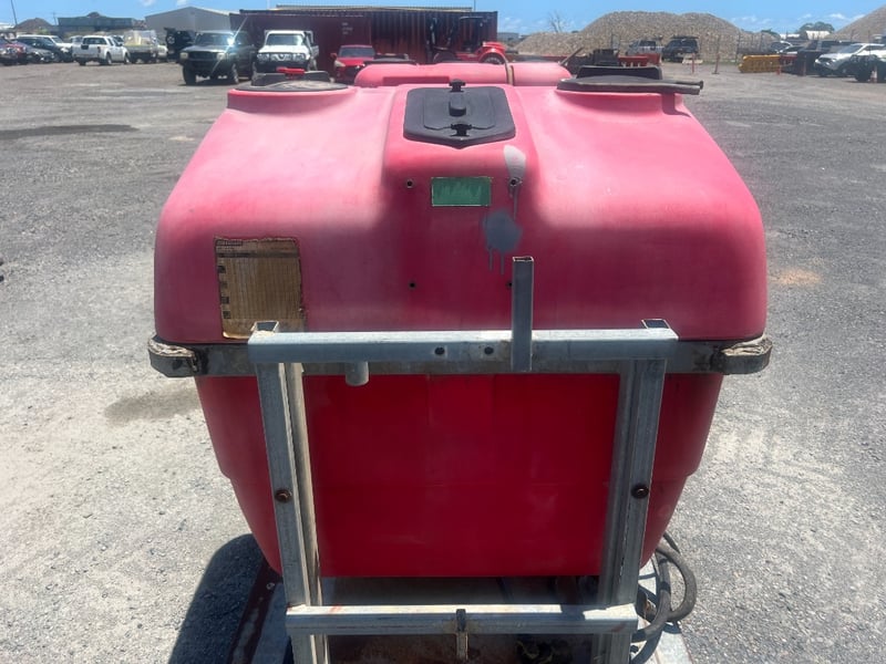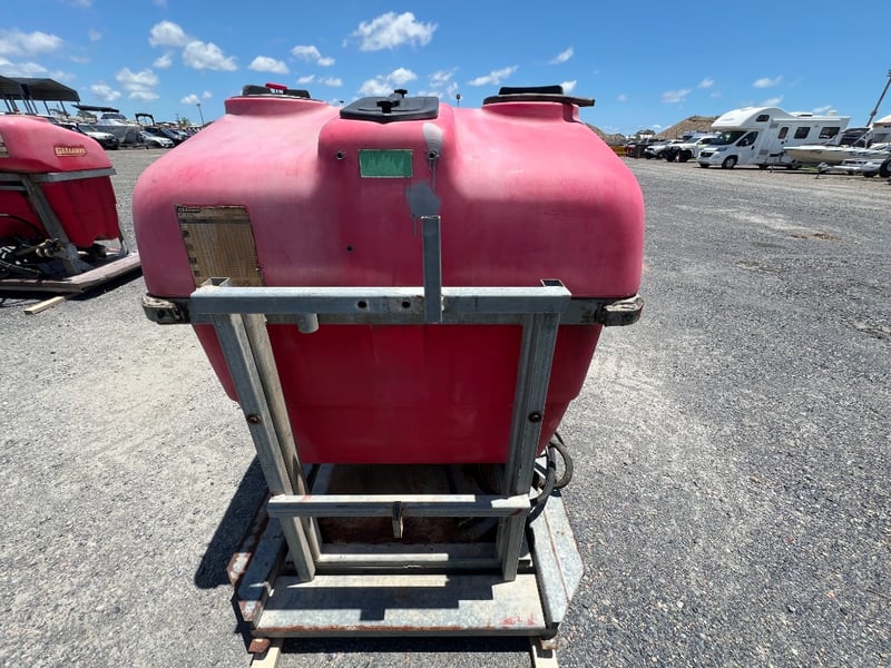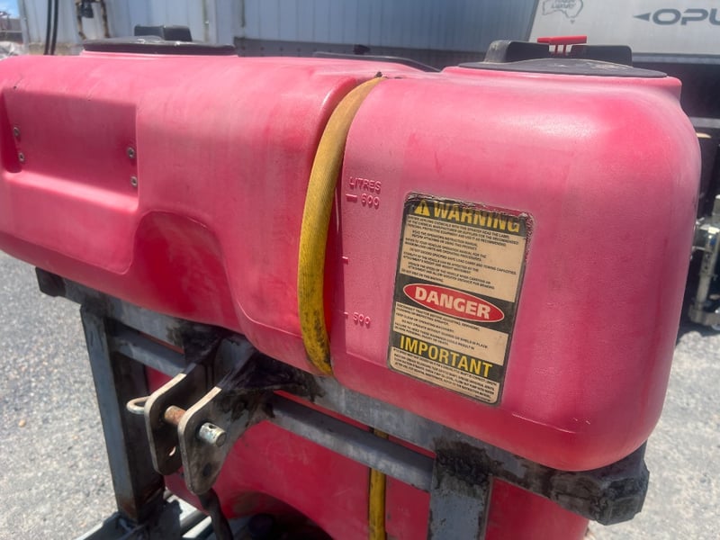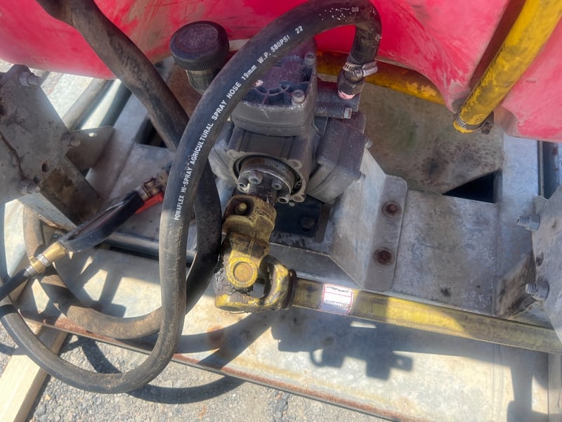 600-litre poly tank, galvanised linkage frame, PTO pump setup, hoses and controls in place.