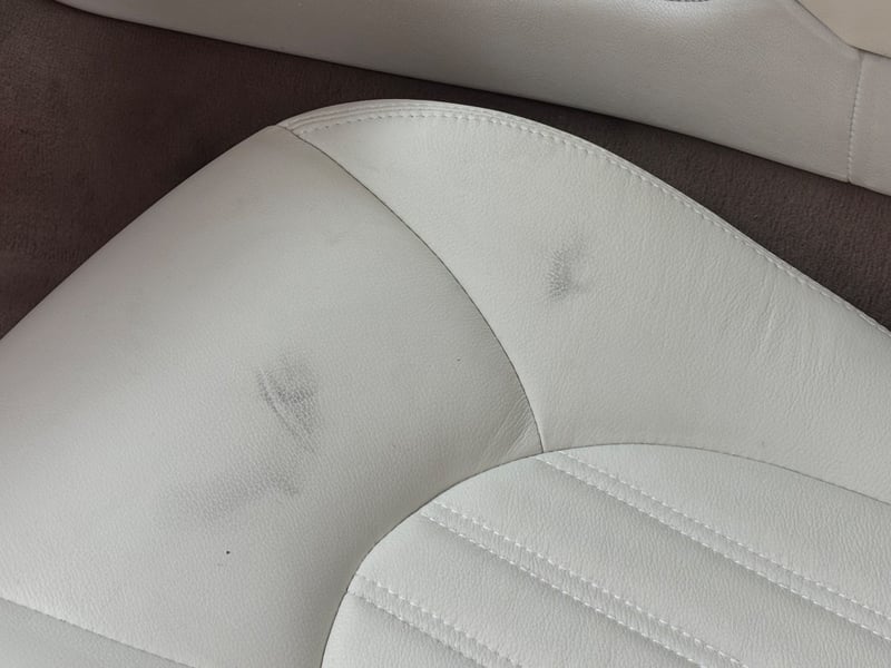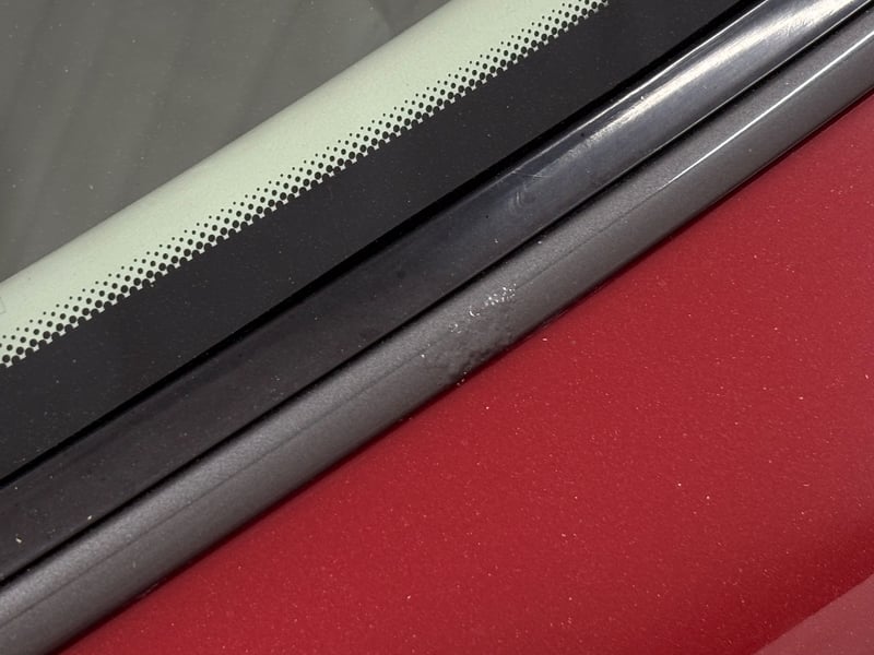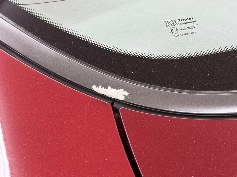 Interior condition shows some marks and wear across upholstery, trim and handles. The driver side seat panel is noted as being out of place, and the cupholder compartment does not lock in position. Exterior condition shows various scratches and marks, with sunfade damage and paint cracking on the roof. Additional sunfade and paint deterioration is evident on plastic and rubber trim.