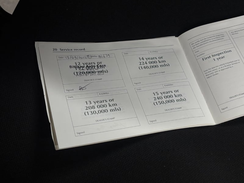 The car includes air conditioning, power windows, SRS, power seats, cruise control, leather interior, climate control, central locking, alloy wheels, CD player, log books and owners manual. Additional features include Sports Mode, Harman/Kardon audio system, memory seats, dash gauge pods (oil pressure, time and battery), tinted windows, spare key, cassette player, car cover and a battery charger.