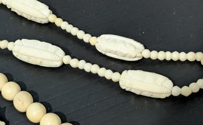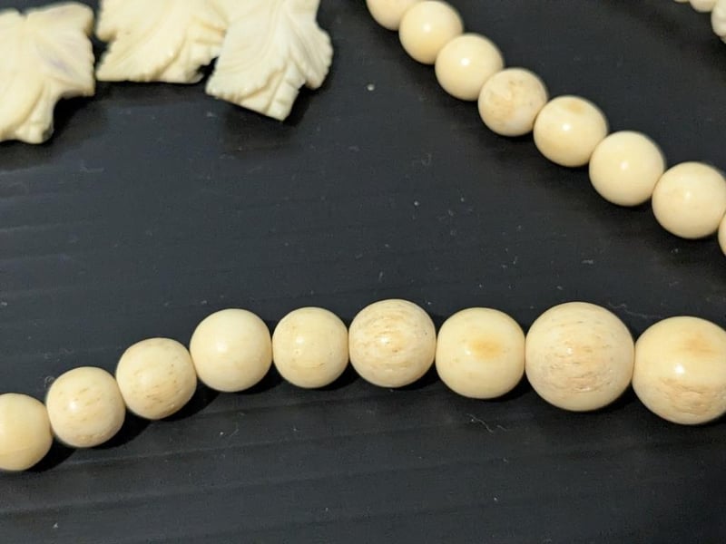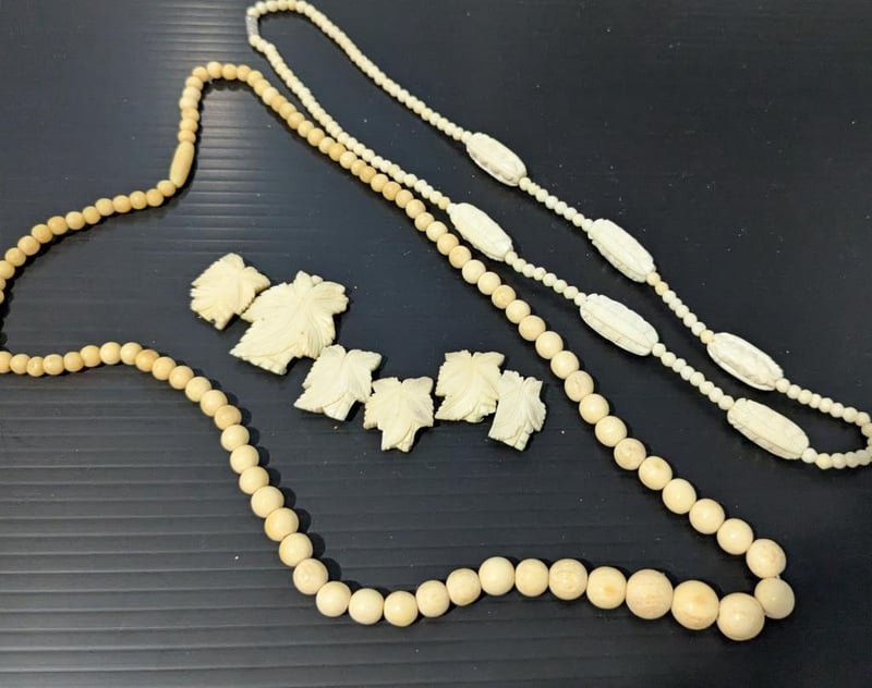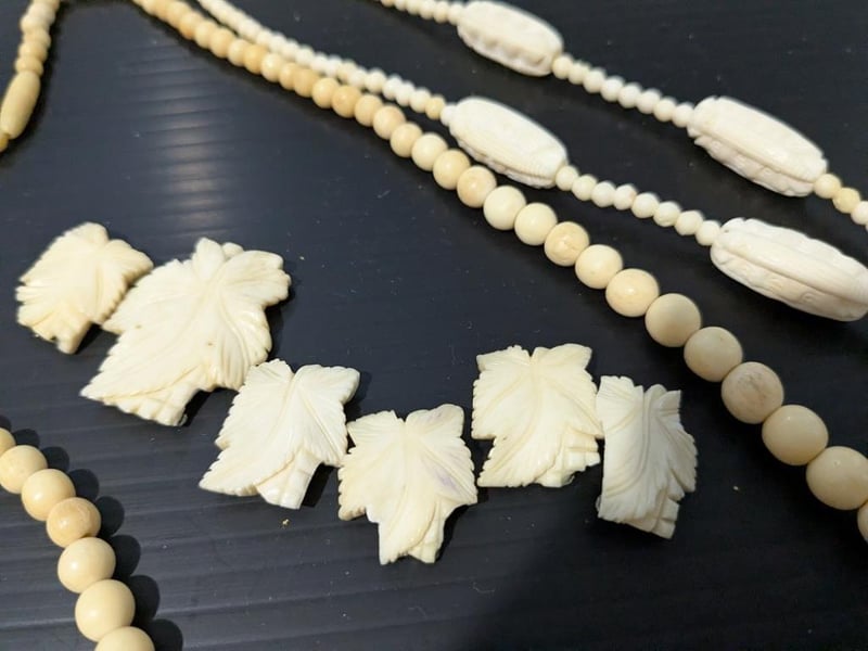 VINTAGE CARVED BONE NECKLACES & LEAF SHAPED PIECES