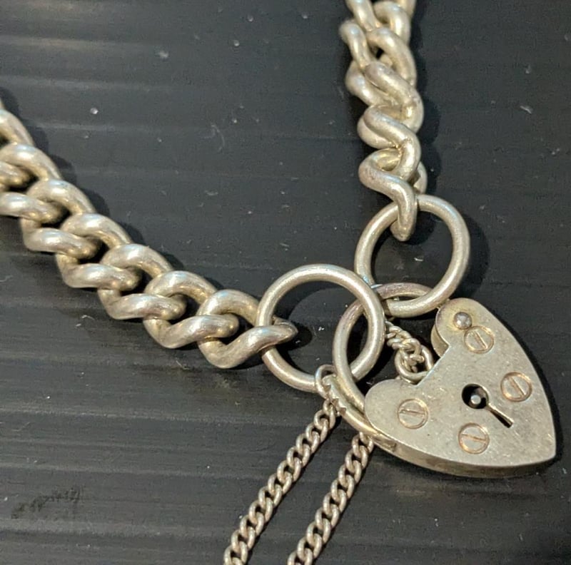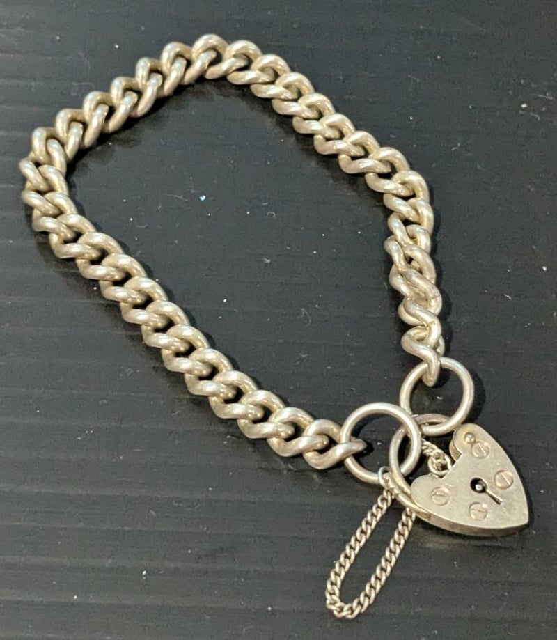 STERLING SILVER PADLOCK BRACELET WITH SAFETY CHAIN