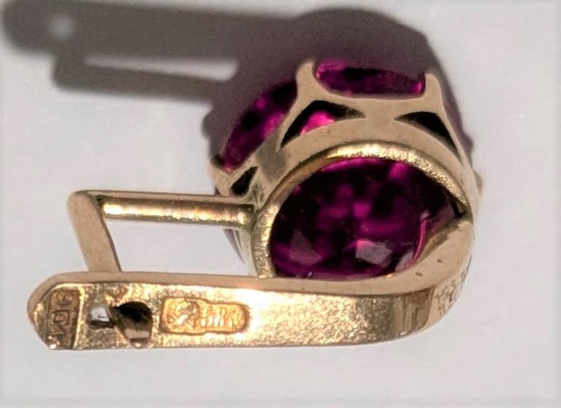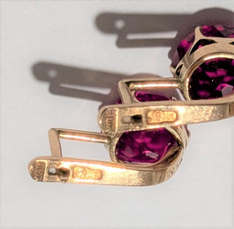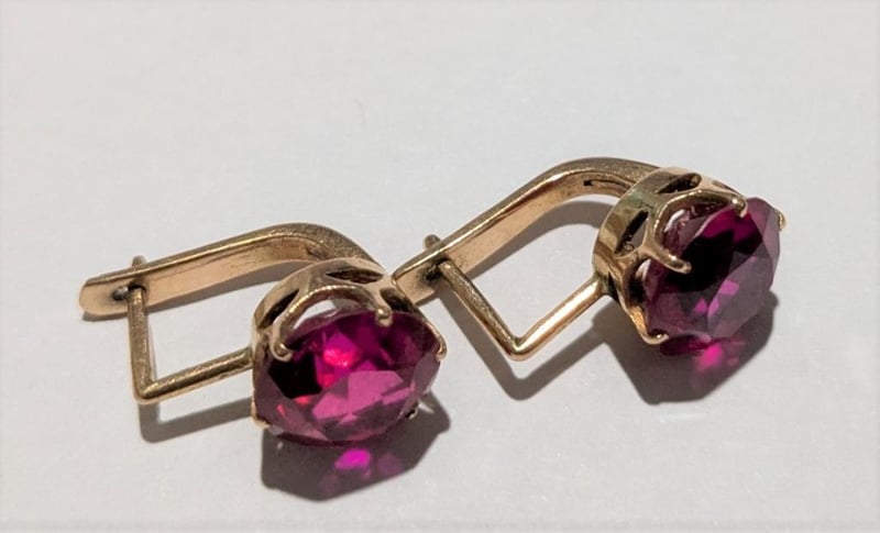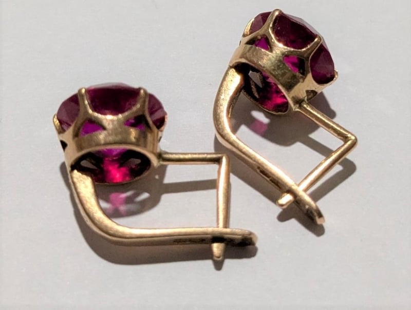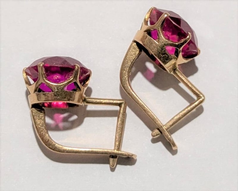14CT GOLD RUSSIAN USSR EARRINGS WITH RED STONES