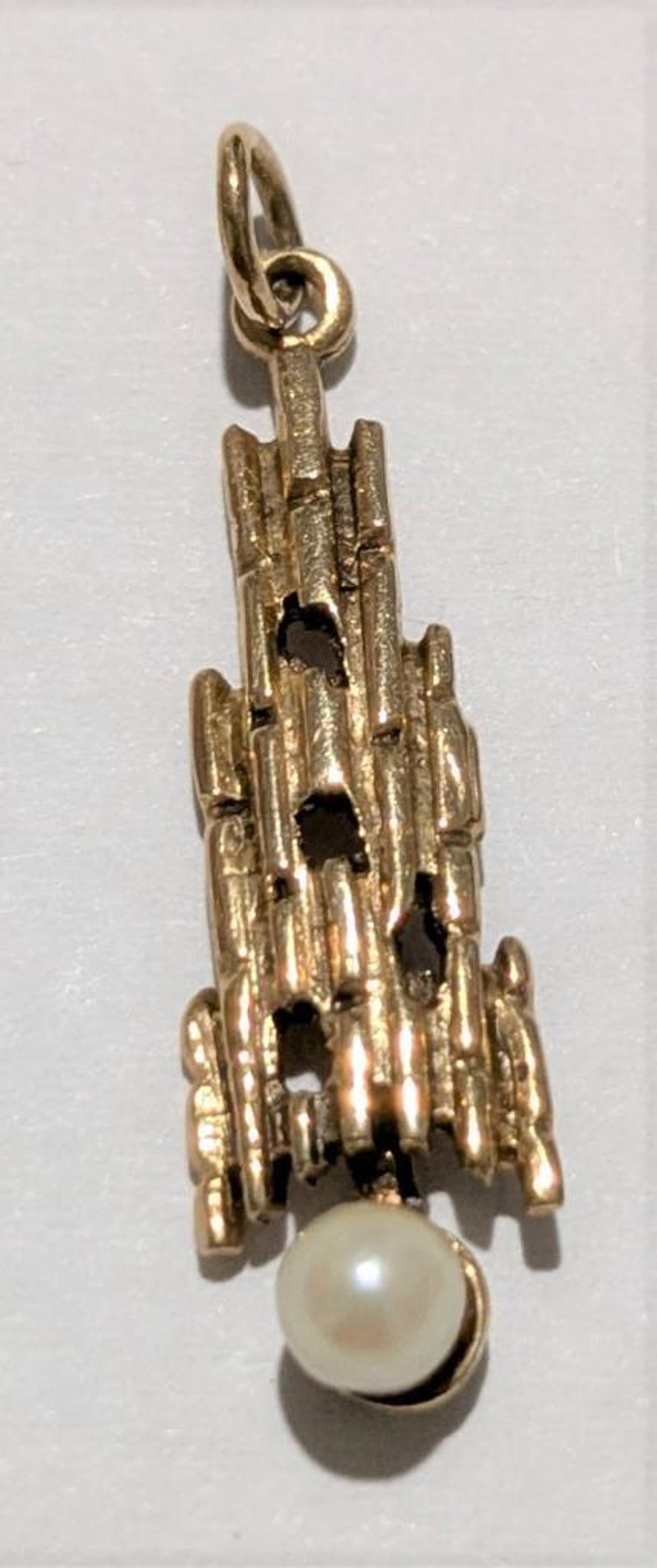 9CT BRITISH BIRMINGHAM MODERNIST PENDANT WITH PEARL