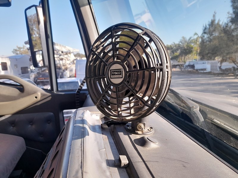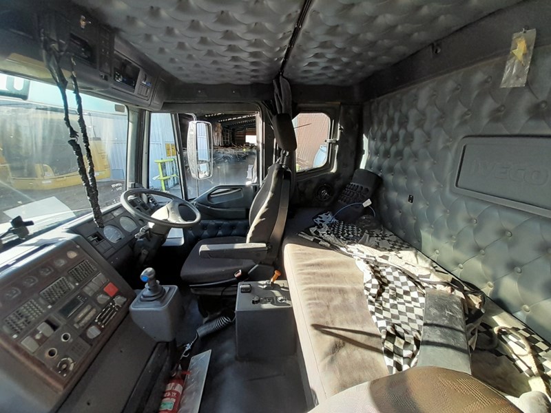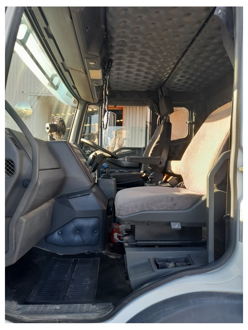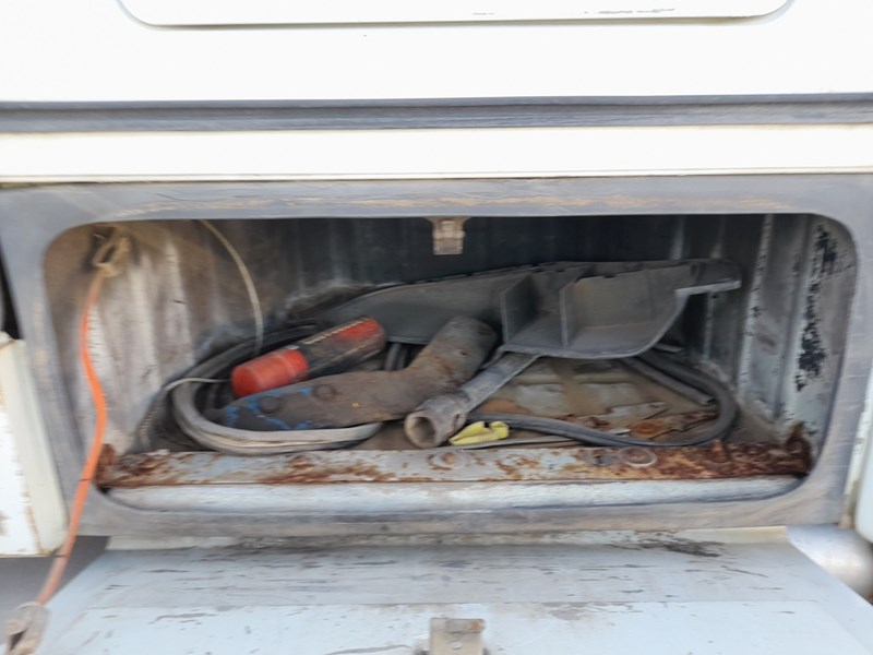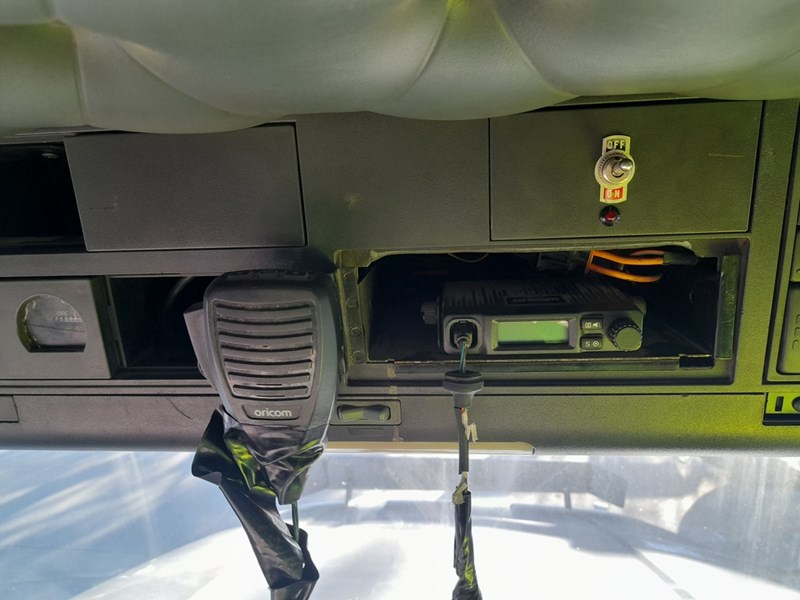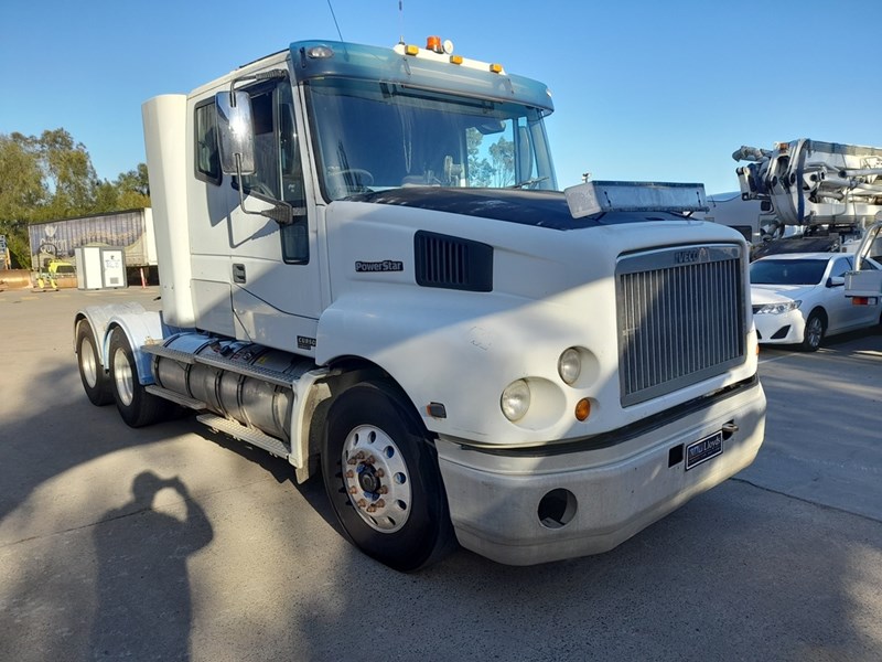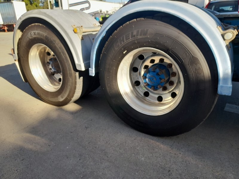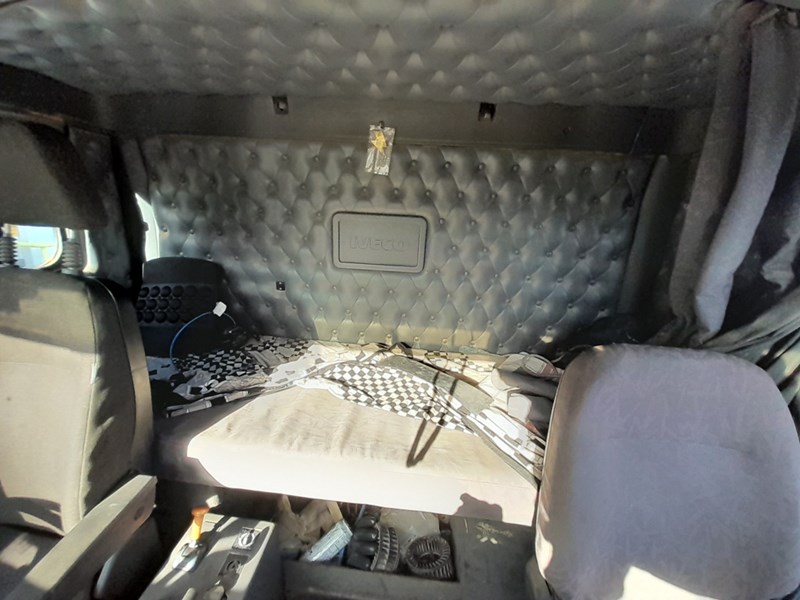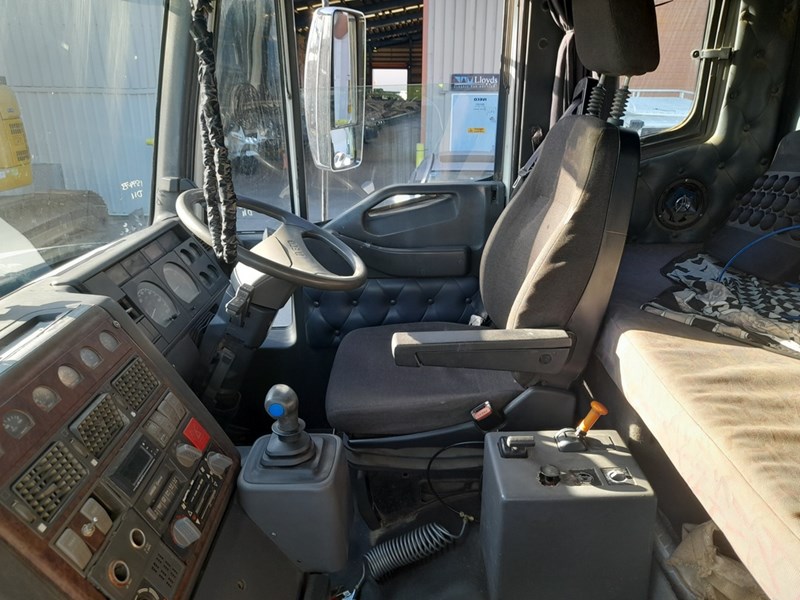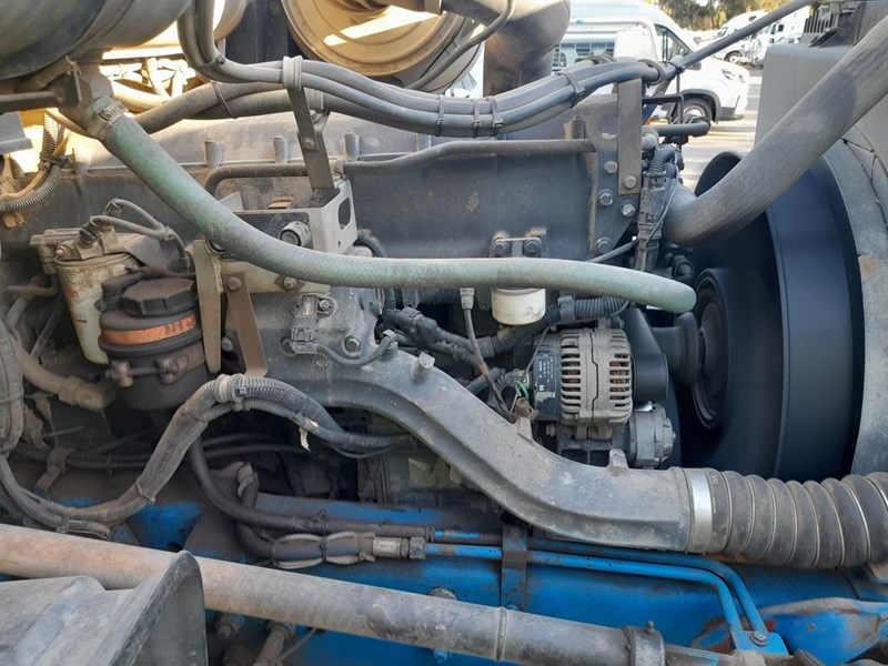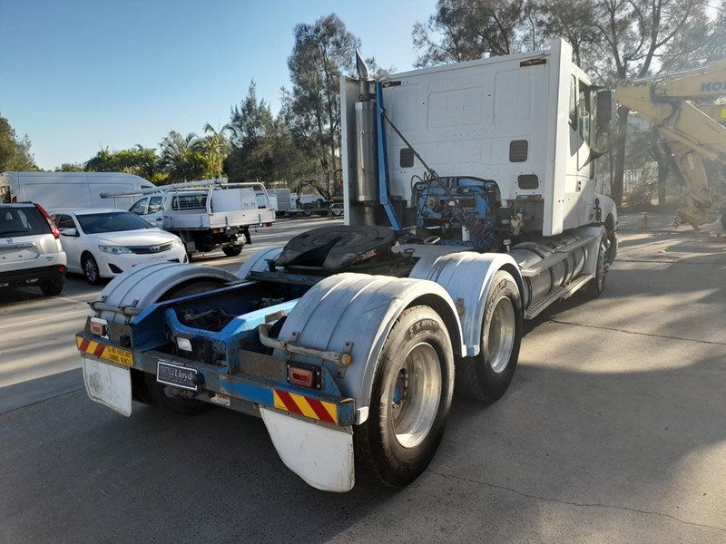 Description: White prime mover, truck, 6-cylinder turbo diesel engine, air con, power windows, cruise control, sleeper quarters with slide across curtain, side tipper and end tippers, and walking floor hydraulics, Kenwood CD player, dash fan , UHF radio