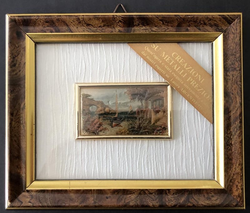 Hand Painted Picture On 925 Silver Plate 16X13X2Cm Made In Italy