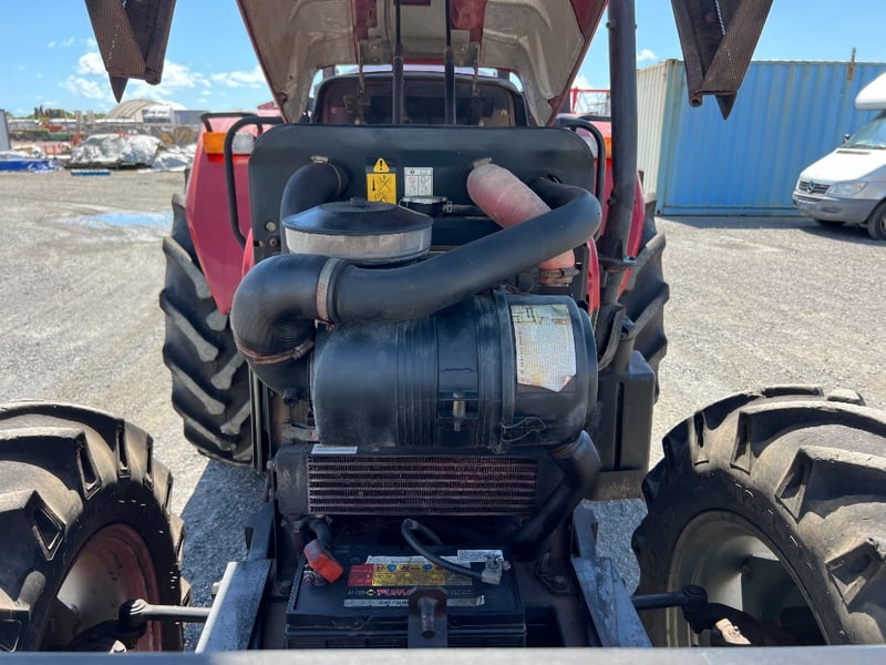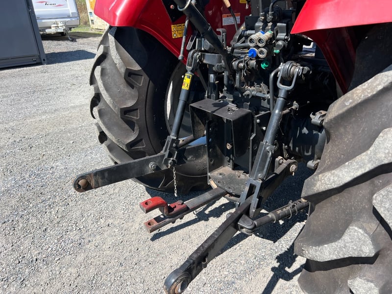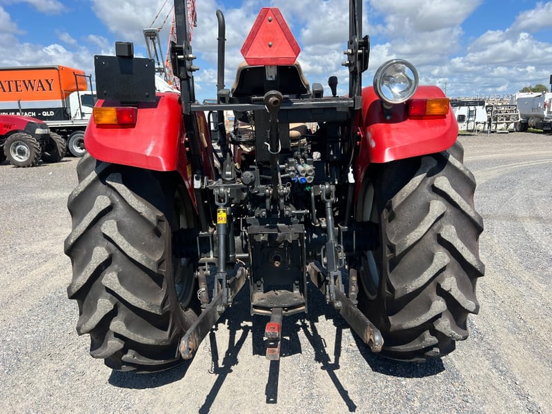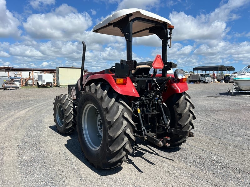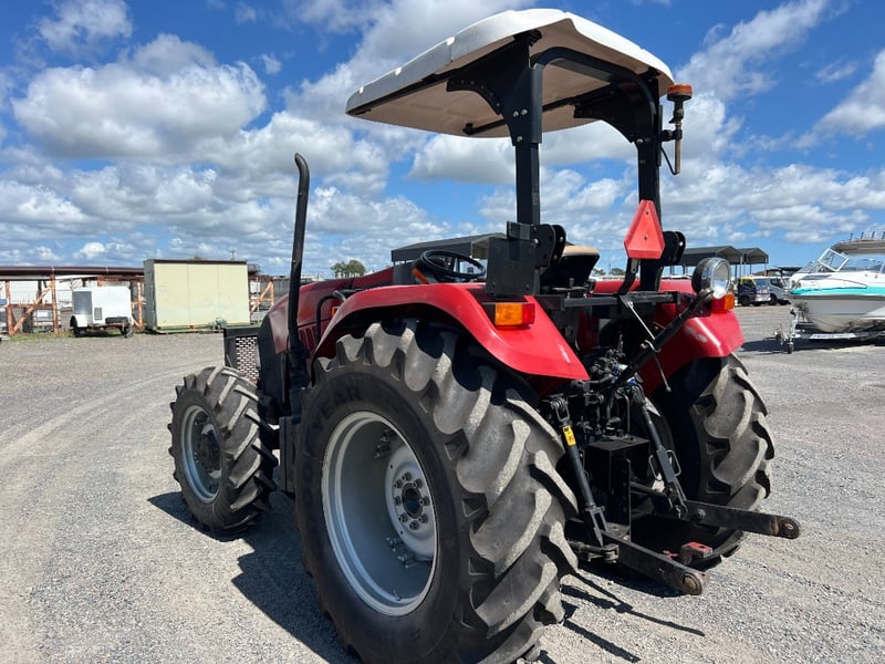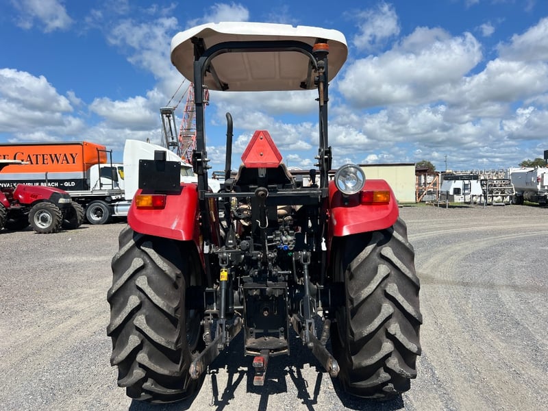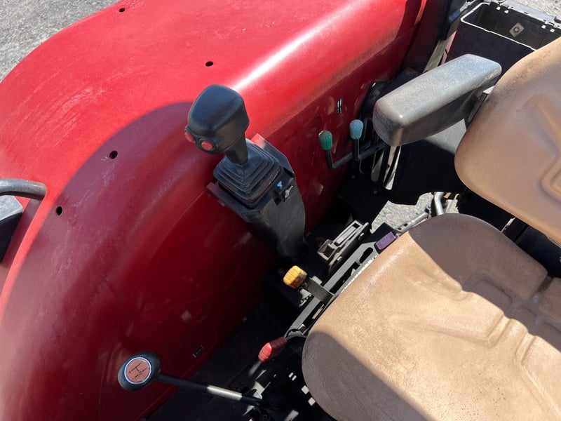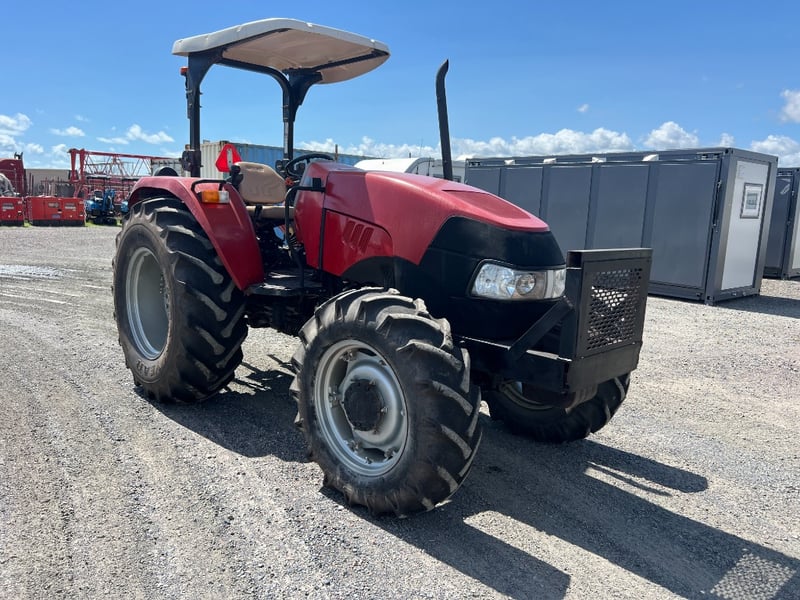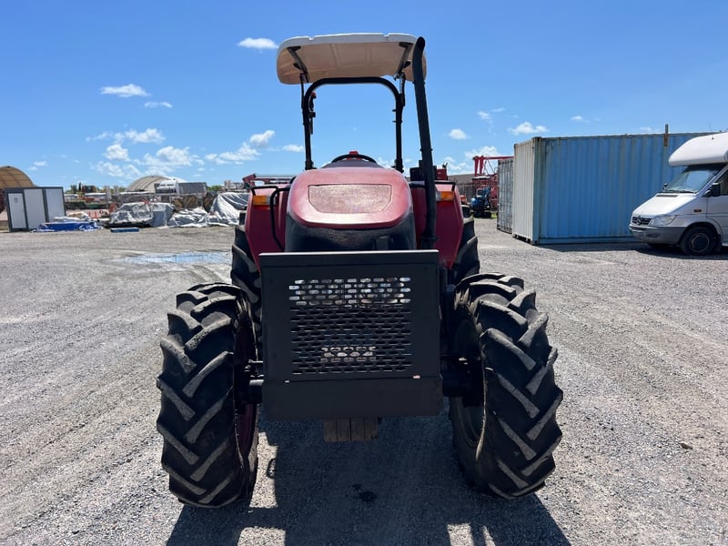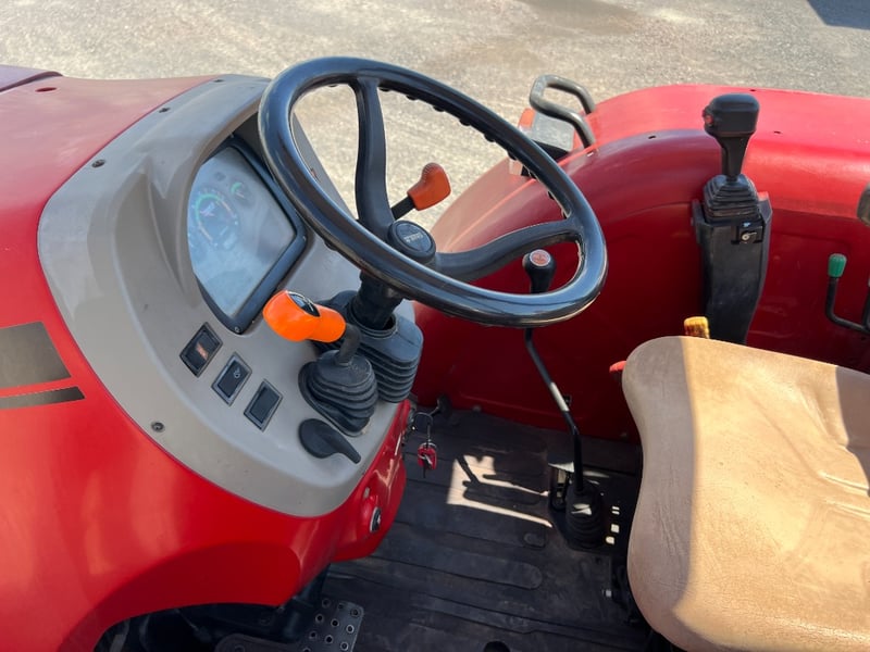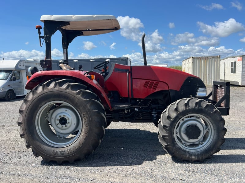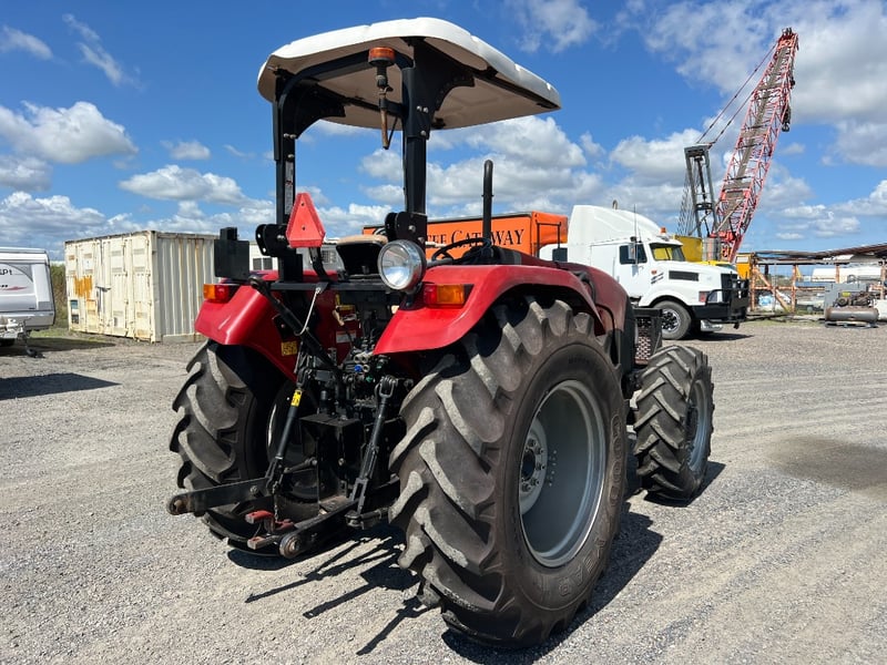 Description: Common features include a heavy-duty 4WD front axle, mechanical shuttle gearbox, spacious open operator platform, ROPS canopy, dual hydraulic remotes, and a smooth, strong rear lift system.