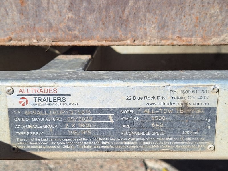 Description/Extras: 50mm Hitch, Chains, Handbrake, Jockey Wheel, 7Pin Flat Male Connection, Dual Rear Loading Ramps