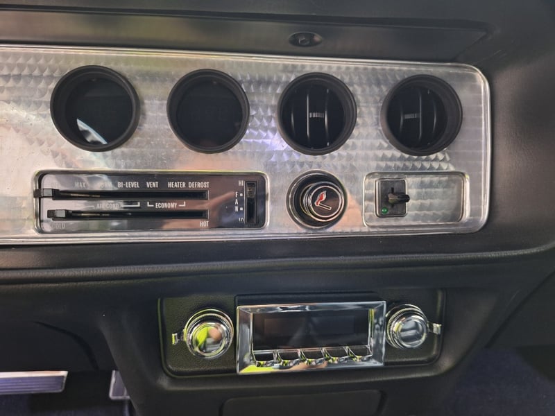 Under the bonnet sits a period-correct 400ci (6.6-litre) V8 fitted with a Quadrajet carburettor and shaker assembly. Power is delivered to the rear wheels via a three-speed automatic transmission and a factory GM 10-bolt limited-slip differential. Steering components were replaced in 2013, while the exhaust system—including headers and dual chrome splitters—was renewed in 2021. The suspension remains faithful to factory specification, utilising coil springs at the front and leaf springs at the rear, with power-assisted disc brakes up front and drums at the rear.
