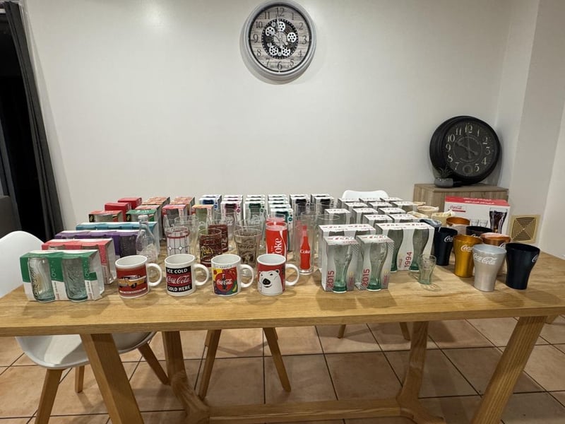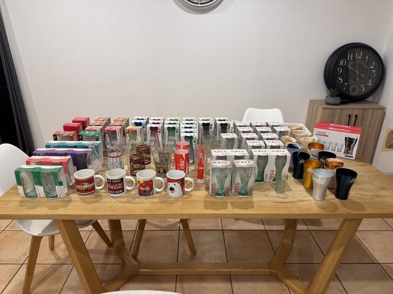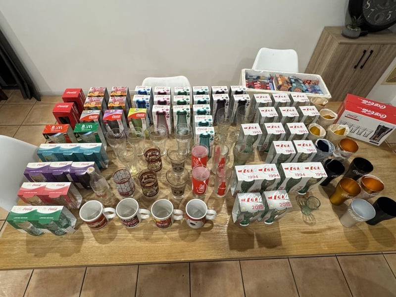 Collection Includes: - 4X Vintage Mugs - 2X Can Glasses - 2X 2008 Beijing Olympics Glasses - 3X 2010 South Africa Fifa World Cup Glasses 2X I Love Summer Glasses - 4X Hungry Jacks Coca Cola Glasses - 1X 2000 Sydney Olympic Glass - 17X 2013 Mcdonald’S Glass (2 Full Sets Of 6) - 17X Mcdonald’S 100 Years Of Coke Glass (2 Full Sets - Missing A 2015 And 1961 To Compete Another Set). - 12X Coca Cola 2020 Anonised Aluminum Cups (No Full Sets). - 1X Vintage Coco Cola 1987 America’S Cup Bottle - 2X Vintage Coca Cola Clear Glasses - 2X Mcdonald’S Coca Cola Tiffany Glasses - 1X Vintage Tiffany Style Coca Cola Frosted Stained Glass - 2X Vintage Coca Cola Clear Schooner Glass - 2X Vintage Victorian Lady Flare Glass - 2X Vintage Enjoy Coca Cola Pedestal Bottom Clear And Red Glads - 2 Vintage Cole Bottle Tumbler Glass - 1X Coca Cola Green Dimple Pebble Glass - 1X Vintage Coca Cola Clear Glass - 2X 16 Oz Vintage Clear Coca Cola Glasses