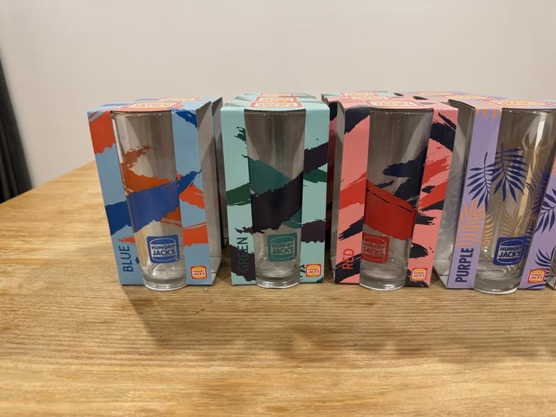 HUNGRY JACKS NEW IN BOX COLLECTIBLE GLASSESHungry Jack’S Glass Collection, All Brand New In Original Boxes. Features Vibrant, Retro-Inspired Designs. Perfect For Collectors Or Nostalgic Fans, These Pristine, Unopened Pieces Capture The Charm Of Australia’S Fast-Food Promotional History.Size: 1Condition: Good - Refer To Images584991+9