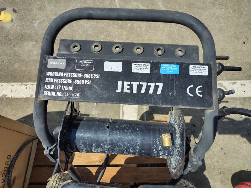 2013 Jet777 pressure washer Working Pressure: 3500 PSIMas Pressure: 3950 PSIFlow: 12L/ minS/N: 201311239