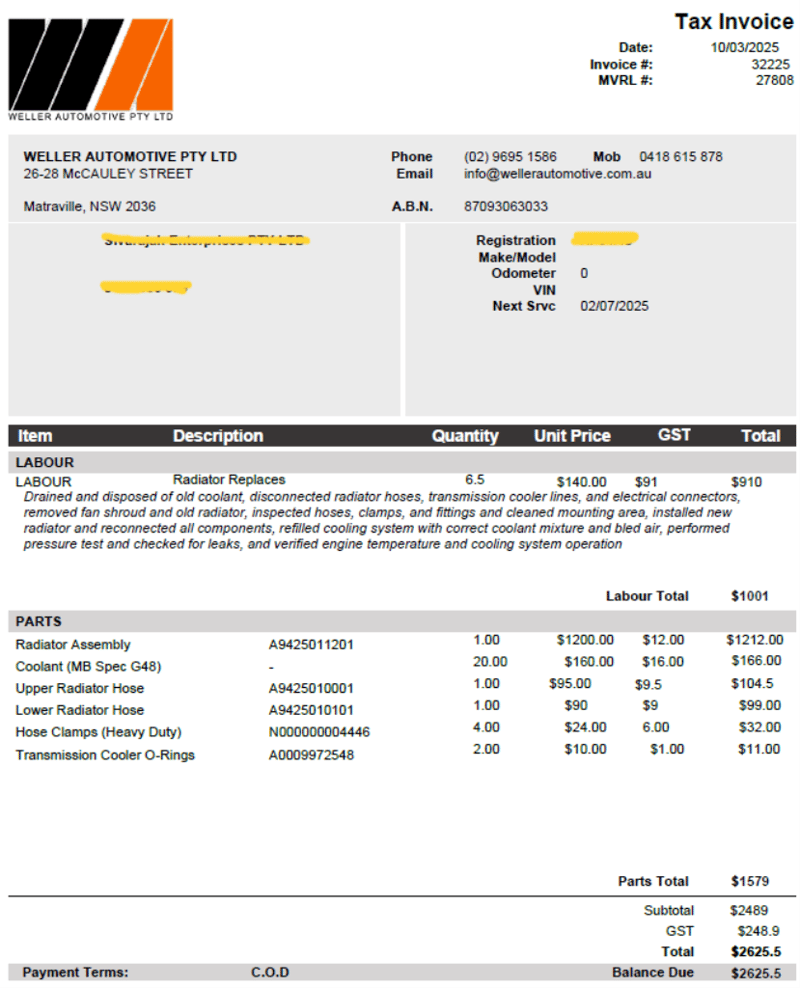 2007 Mercedes Benz Actros Year: 2007Make: Mercedes BenzModel: ActrosBody: 2-Door Prime MoverDrive Type: Front wheel driveOdometer: Indicating 43,885 KilometresEngine: 18.5 DieselTransmission: AutomaticColour: WhiteSeats: 2Description/extras: Air Conditioning, Power windows, SRS, AUX / USB, CD player. Engine Tilting Tools are Not included2007 Mercedes Benz Actros WhiteBody: Prime MoverTray not included Configuration: 4x2 GVM: 18000KGGCM: 55000KG B DoubleNew Radiator, Clutch fitted on Jan 2025 (Please Refer to Images)Notes: Trailer not includedKey: CTM38 VIN: WDB9340322L349610ENG No: 5419********** AS PER PPSR(Key #CTM38 Marple)Lloyd's stock #580858+1