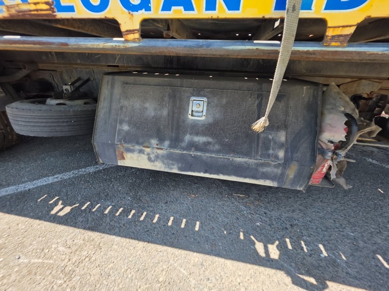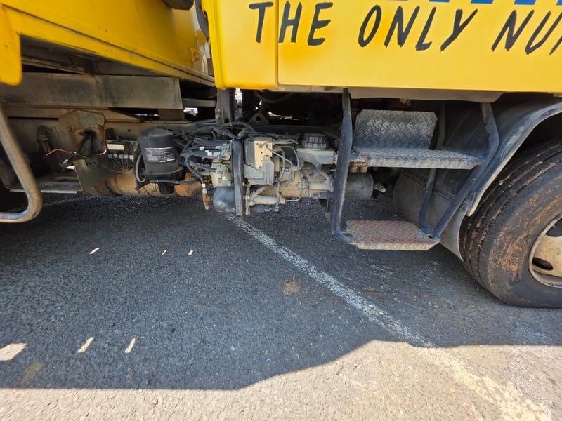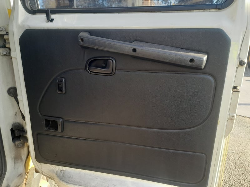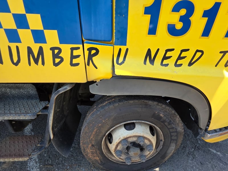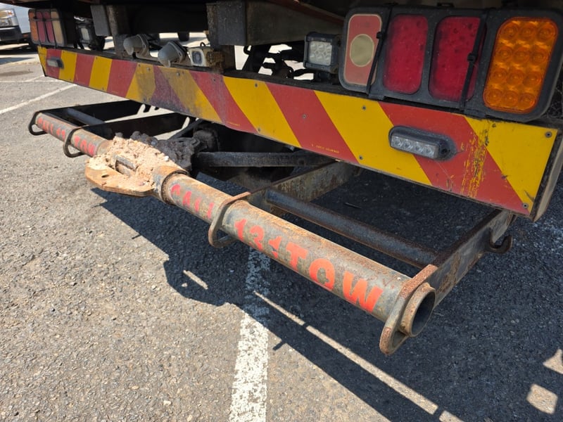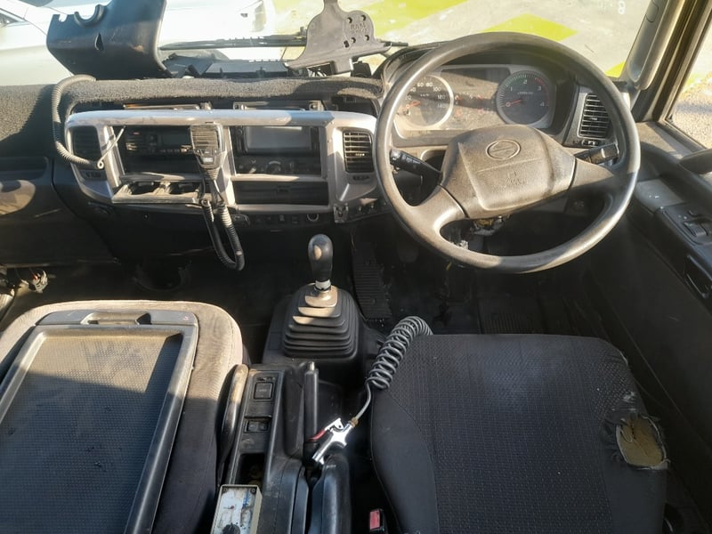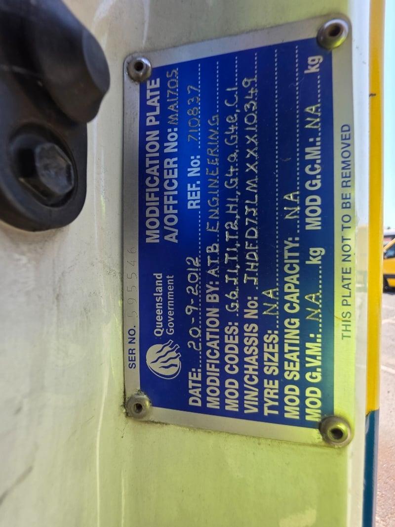 Description/extras: New batteries, large cab, UHF radio dash mat, drink holders, yellow energy caution beacons and light sign on roof, LED bat spot lights, window smashed, marks & scratches, air leak.