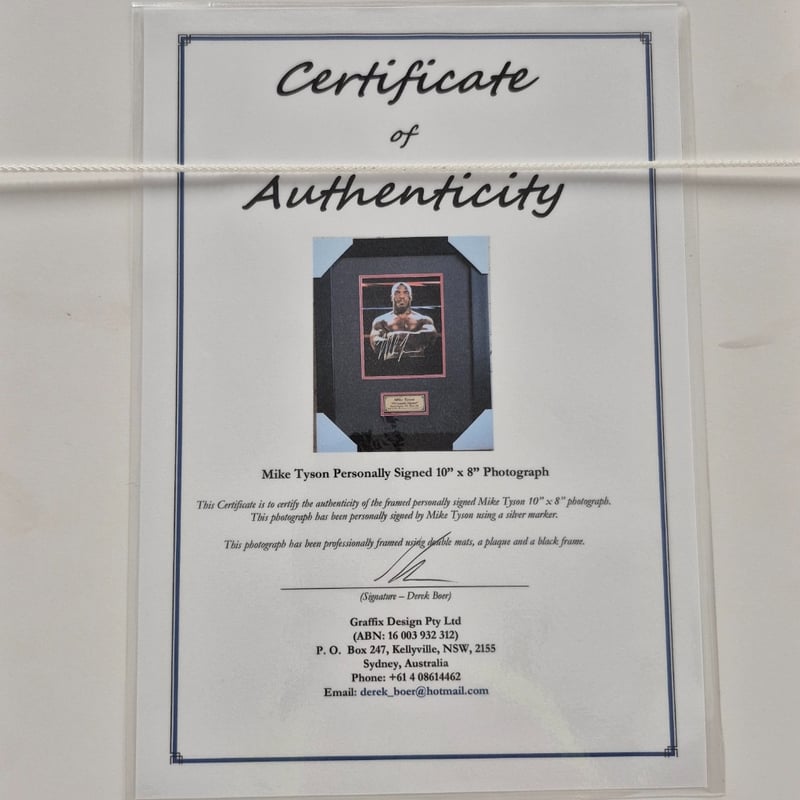 SIGNED MIKE TYSON PHOTOGRAPHItem Size: Height: 3cm, Width: 53cm, Depth: 43cm, Weight: 3KgAccompanied By Certificate Of AuthenticityCondition: Good - Refer To ImagesRACK 13B587708+8