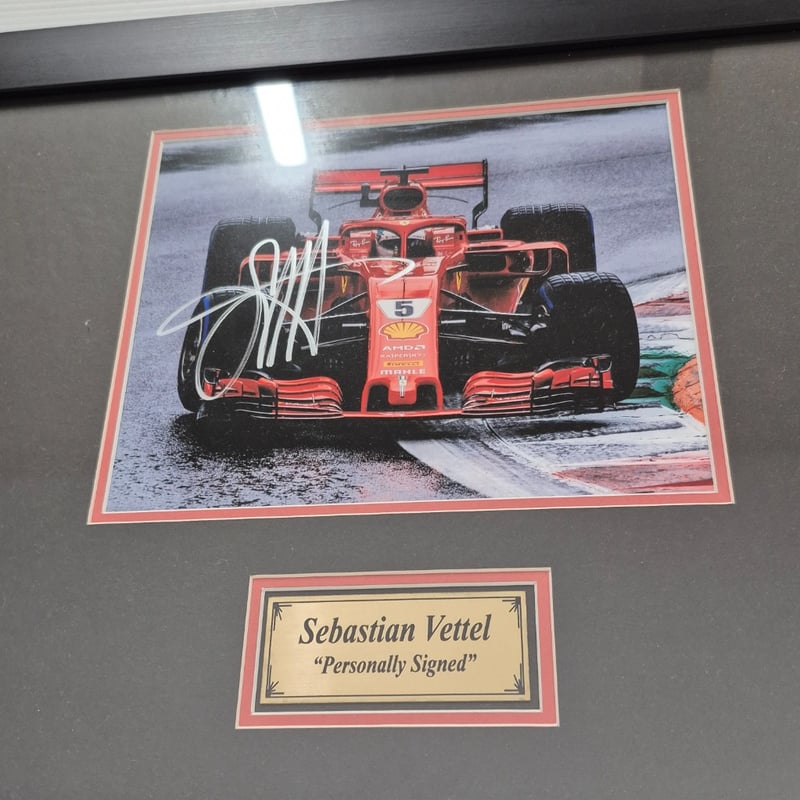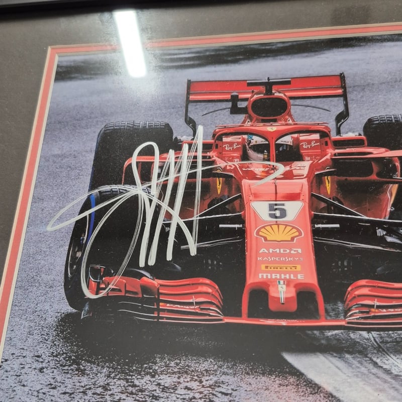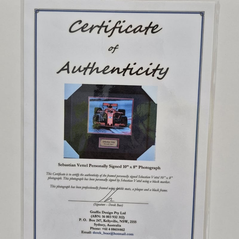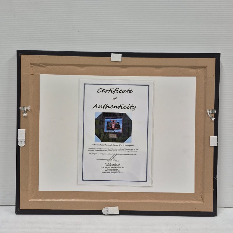 SIGNED SEBASTIAN VETTEL PHOTOGRAPHItem Size: Height: 3cm, Width: 53cm, Depth: 43cm, Weight: 3KgAccompanied By Certificate Of AuthenticityCondition: Good - Refer To ImagesRACK 13B587708+13