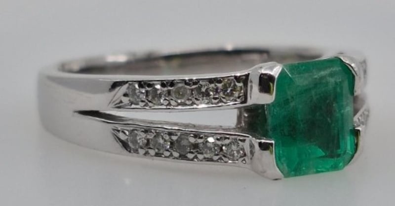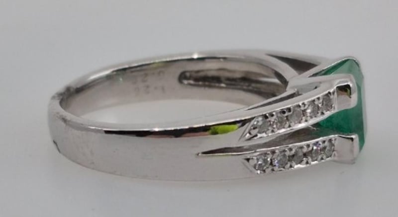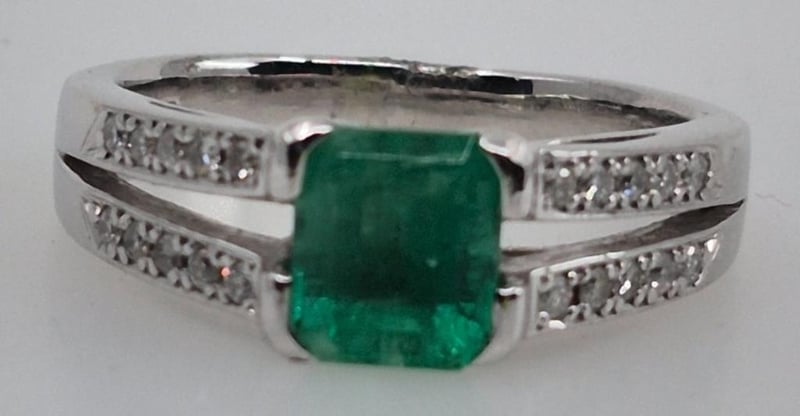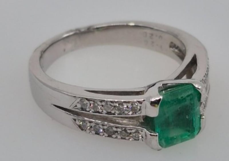 Featuring 1 Emerald Cut Colombian Emerald, 4 Claw Set Weighing 1.20Cts And 20 Pave Set Diamonds 20Pts