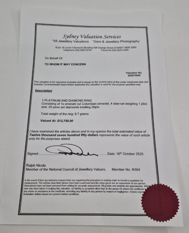 This valuation has been conducted by an independent third-party professional. The valuation amount is an assessment by the issuing valuer and does not reflect the auction value of the item.