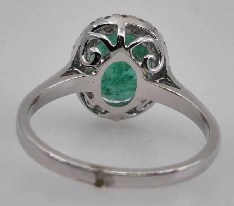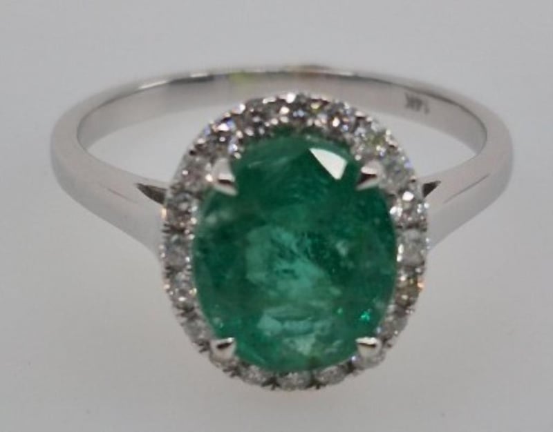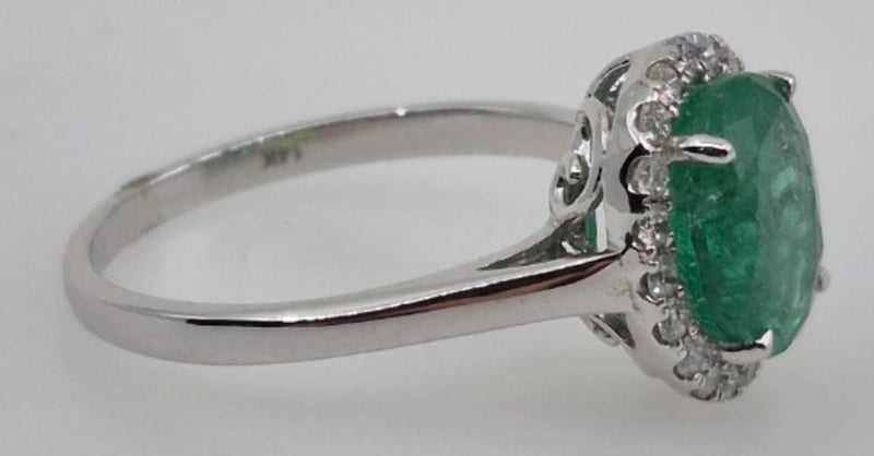 14K WHITE GOLD EMERALD AND DIAMOND RING