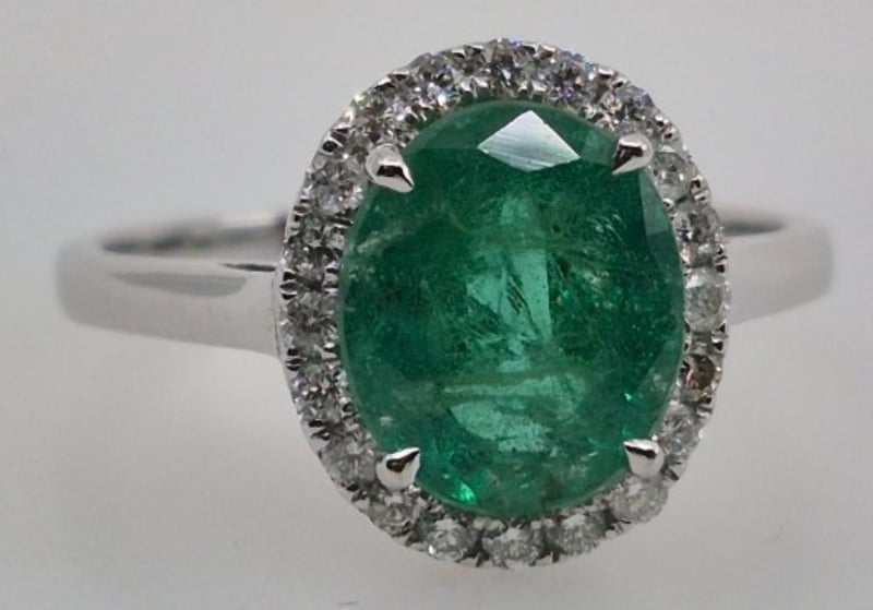 Featuring 1 Oval Shape Colombian Emerald, Weighing 1.8Ct And 20 Claw Set Of Brilliant Cut Diamonds Totalling 0.52Ct