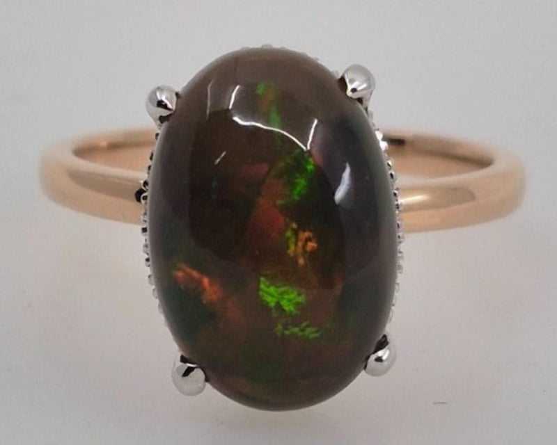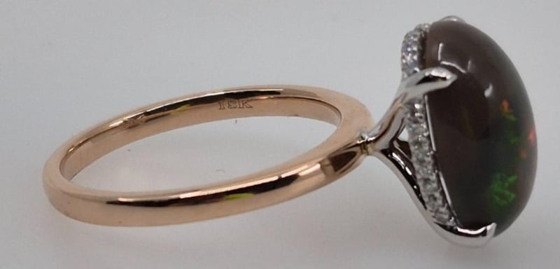 18K WHITE GOLD AND YELLOW GOLD OPAL AND DIAMOND RING