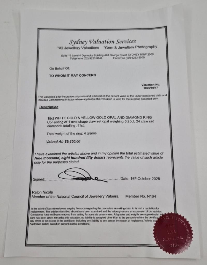 This valuation has been conducted by an independent third-party professional. The valuation amount is an assessment by the issuing valuer and does not reflect the auction value of the item.