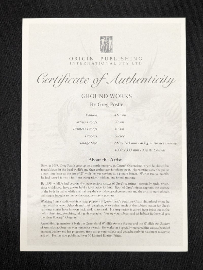 GREG POSTLELimited Edition Giclee On PaperTitle: Ground WorksImage Size: 28cm x 85cmSheet Size: 42cm x 91cmEdition: 63/450Signature Details: Signed Lower LeftAccompanied By A Certificate Of AuthenticityCondition: Good - Refer To Images584970+9