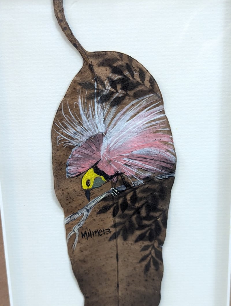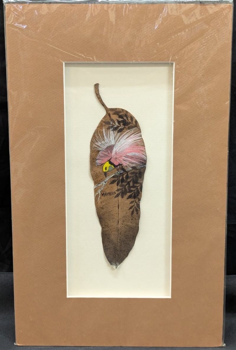 FLYNN J WALLACE (MILMERRA) (1942-)Original Oil Painting On LeafTitle: Bird Of ParadiseImage Size: 22cm x 7cmFrame Size: 41cm x 26cmSignature Details: Signed Lower LeftCondition: Good - Refer To Images584970+40