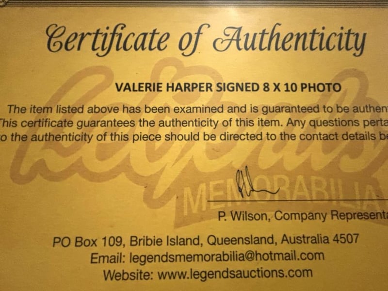 Valerie Harper (D 2019) Personally Signed 8 X 10 Photo. Harper Was An American Actress. She Began Her Career As A Dancer On Broadway, Making Her Debut As A Replacement In The Musical Li'L Abner. She Played Rhoda Morgenstern On The Mary Tyler Moore Show(1970–1977) And Its Spinoff Rhoda (1974–1978). The Item Is Accompanied By A Certificate Of Authenticity.