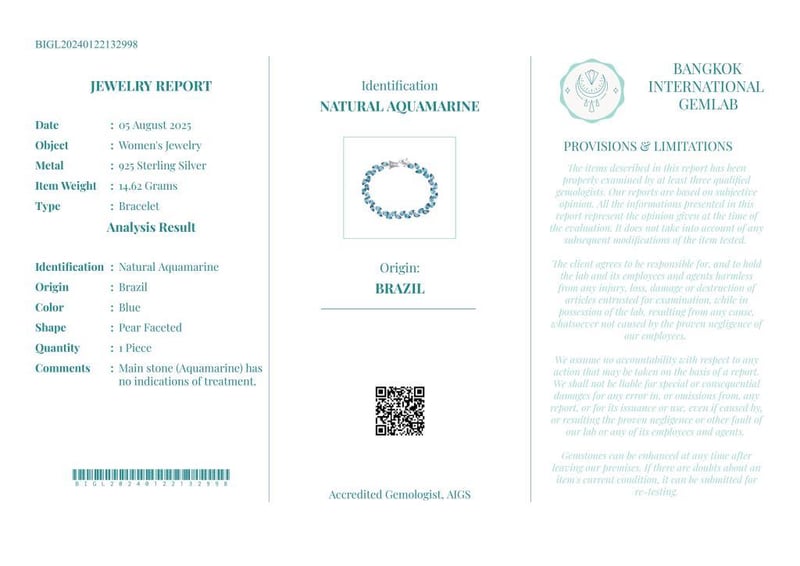 Comments : Main Stone (Aquamarine) Has No Indications Of Treatment.