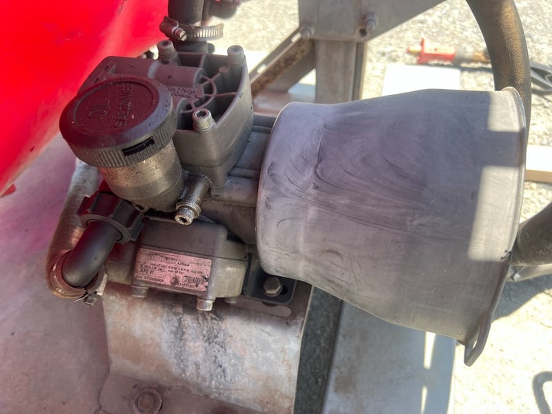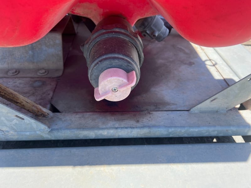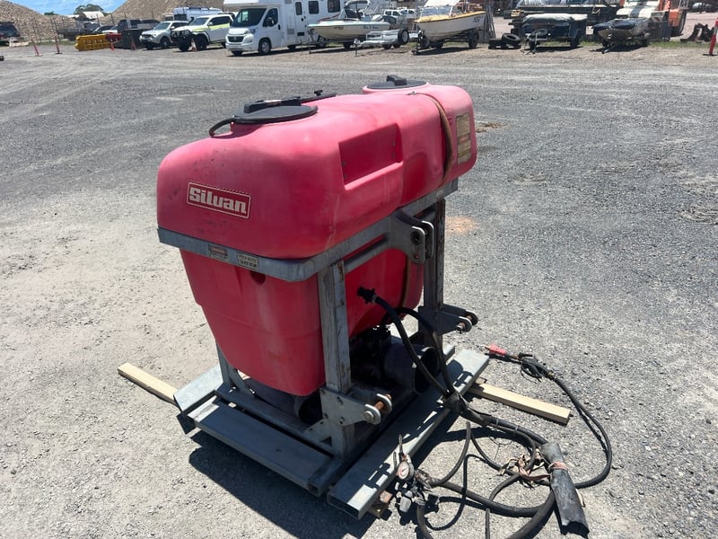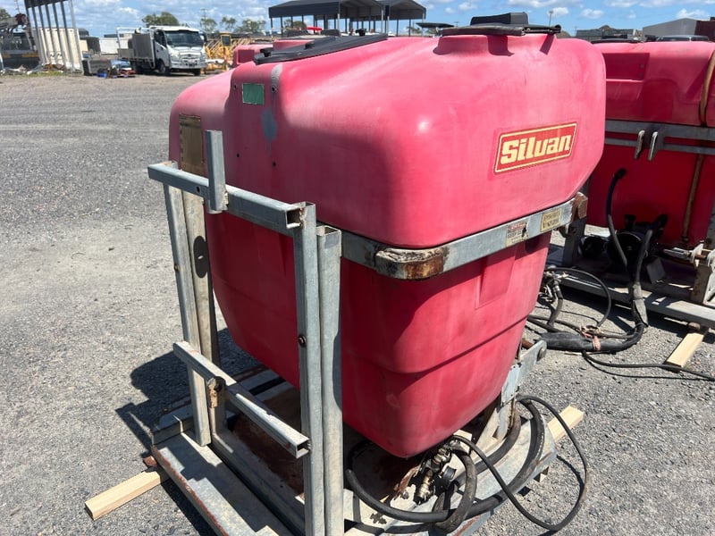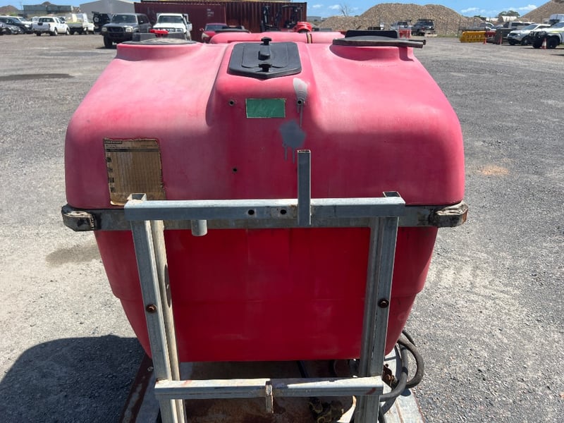 600-litre poly tank, galvanised linkage frame, PTO pump setup, hoses and controls in place.