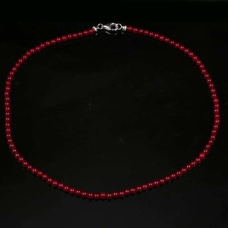 Stunning Red Zade Beaded Necklace with Ghungroo and Fish Lock Indulge in the captivating allure of our exquisite Red Zade Plain Ball Beads Necklace, a true masterpiece that effortlessly blends elegance with cultural charm. Comprising approximately 101 meticulously polished beads, each measuring between 4.40mm and 4.50mm, this necklace radiates a vibrant warmth that is both eye-catching and sophisticated. The rich, deep red tones of the Zade stones exude a sense of luxury, while the intricate design features a secure 13.00mm fish lock, ensuring that this statement piece not only enchants but also provides durability for everyday wear or special occasions. The addition of ghungroo charms adds a delightful touch, creating a gentle jingling sound that dances with every movement, reminiscent of festive celebrations. Perfect for those who appreciate the timeless beauty of handcrafted jewelry, this necklace is an invitation to express your unique style. Whether worn solo for a minimalistic look or layered with other treasures, it is destined to become a cherished addition to your jewelry collection. Embrace the elegance of tradition and make a statement that resonates with sophistication and grace.