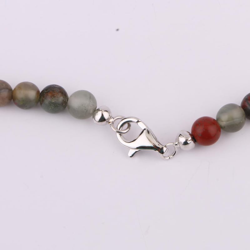 Elegant Multi Jasper Beads Necklace with Ghungroo and Fish Lock Indulge in the vibrant allure of this exquisite Multi Jasper Beads Necklace, featuring approximately 68 perfectly crafted 6.00-6.50mm stone beads. Each bead is a unique expression of nature's artistry, showcasing the captivating patterns and rich hues of Jasper, from earthy browns to serene greens, embodying the spirit of organic elegance. The necklace is elegantly secured with a 13.00mm fish lock, ensuring both a secure fit and a touch of sophistication. The addition of the traditional ghungroo lends a melodic charm, creating a delightful sound with every movement. This piece is not just jewelry; it is a celebration of culture and craftsmanship, ideal for both casual wear and special occasions. Elevate your collection with this stunning necklace, where each bead tells a story and every detail reflects the beauty of timeless style. Don’t miss the chance to own this statement piece that effortlessly blends tradition with contemporary flair.