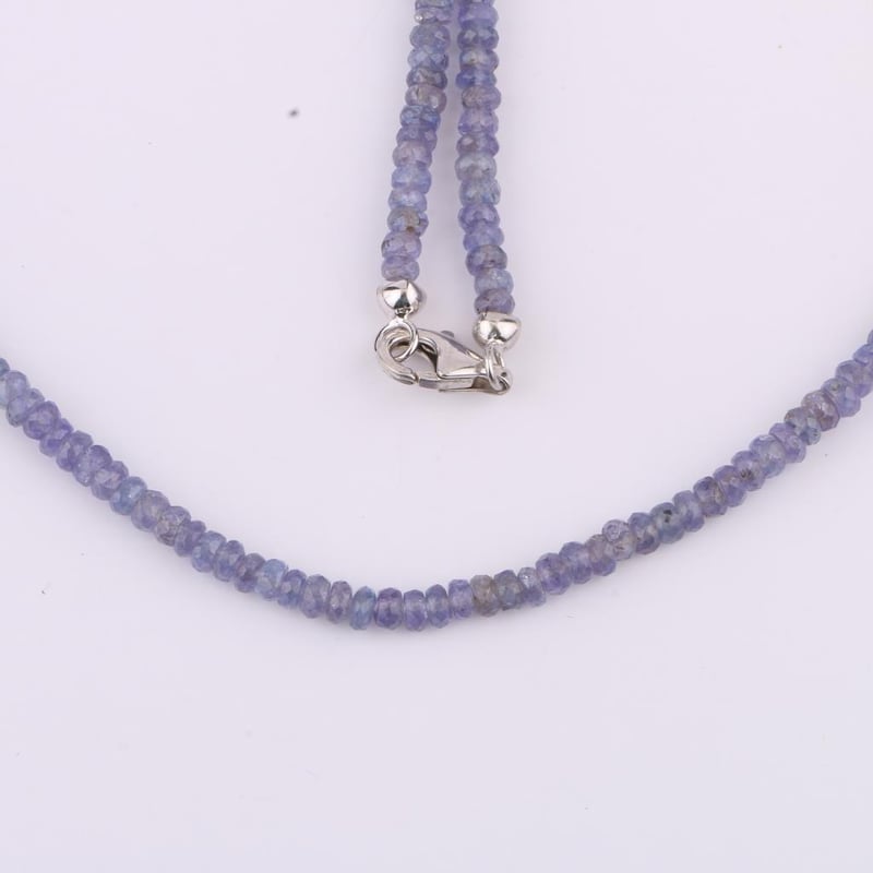 Exquisite Tanzanite Faceted Bati Beads Necklace Indulge in the enchanting allure of this exquisite Tanzanite Faceted Bati Beads Necklace, a true masterpiece that captures the essence of elegance and sophistication. Comprising approximately 200 meticulously crafted beads, each ranging from 2.10 to 3.80mm in size, this necklace showcases the mesmerizing hues of tanzanite—an extraordinary gemstone revered for its vivid violet-blue tones that shimmer with every movement. The necklace is artfully strung together with a fish lock measuring 13.00mm, ensuring both security and style, while the charming ghungroo accents add a delightful touch of tradition. With dimensions of 3.60x2.20mm, the uniquely shaped bati beads create a captivating play of light, making this piece a stunning addition to any jewelry collection. Whether worn for an elegant evening affair or as a statement piece for everyday elegance, this Tanzanite necklace embodies a rare combination of luxury and versatility. Elevate your style and let the enchanting beauty of this necklace speak volumes of your exquisite taste. Don't miss the opportunity to own a piece of nature's finest artistry.