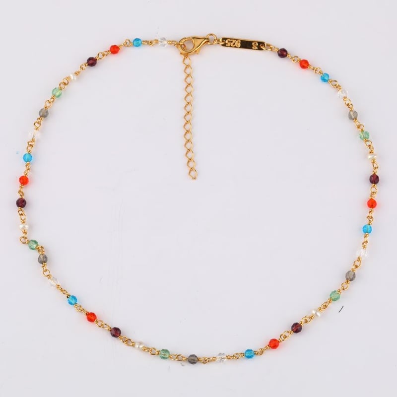 Exquisite Color Harmony: Multi-Stone Faceted Ball NecklaceIndulge in the breathtaking allure of this meticulously crafted necklace, an exquisite celebration of color and elegance. This stunning piece features a symphony of vibrant gemstones, each faceted ball measuring a delicate 2.00mm, showcasing the natural beauty of the earth's finest crystals.At the heart of this masterpiece, eight stunning African Amethyst color crystals radiate with a regal hue, exuding a sense of nobility and sophistication. Complementing this opulence are the warm and inviting carnelian color crystals, which add a touch of earthiness and vibrancy, creating a perfect balance of warmth and coolness.Blue topaz, in its lightest hue, dances through the design, invoking the tranquil essence of a clear blue sky, while the smoky color crystals provide a grounding depth, adding a layer of mystery to this enchanting piece. The lively peridot crystals bring a fresh burst of green, reminiscent of lush landscapes, while the synthetic pearl accents lend a classic touch of luminescence and elegance.Each element is meticulously arranged on a robust chain, featuring a round jump ring and a fish lock for secure wear, ensuring that this necklace is as practical as it is beautiful. The piece is finished with a stylish tag that bears the mark of craftsmanship and attention to detail.Perfect for those who appreciate the finer things in life, this necklace is a versatile adornment that effortlessly elevates any ensemble—from casual daywear to elegant evening attire. Embrace the beauty of color, the richness of texture, and the artistry of design with this exquisite multi-stone faceted ball necklace. A true treasure awaits its new owner at this exclusive auction.