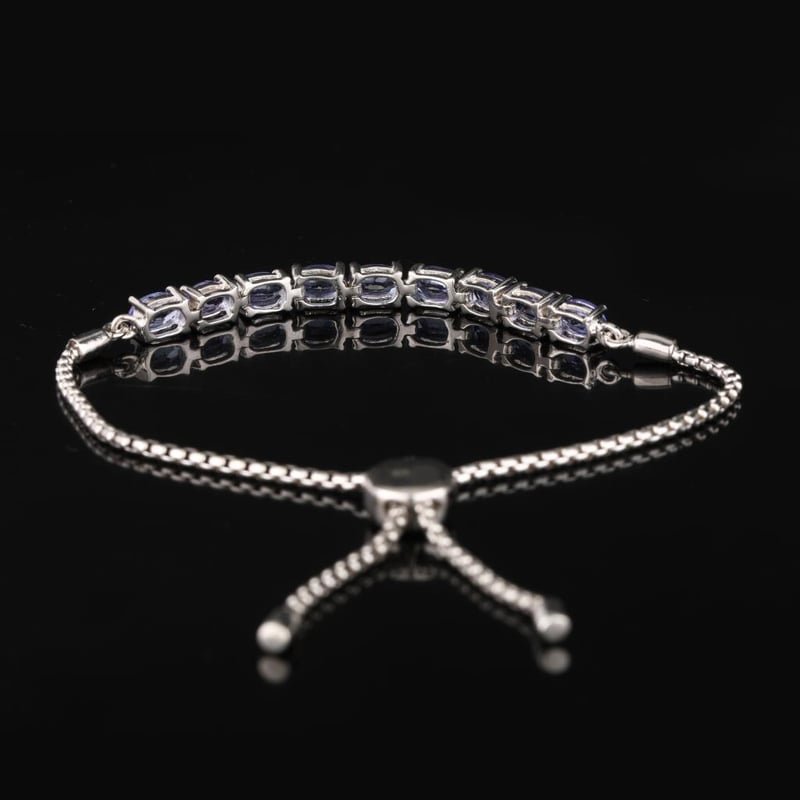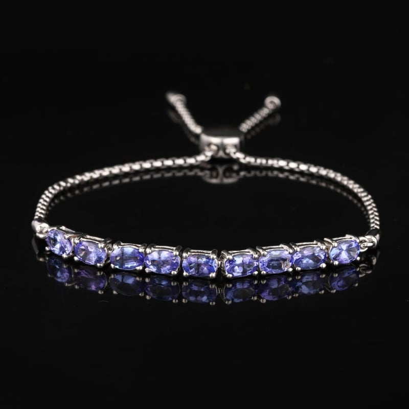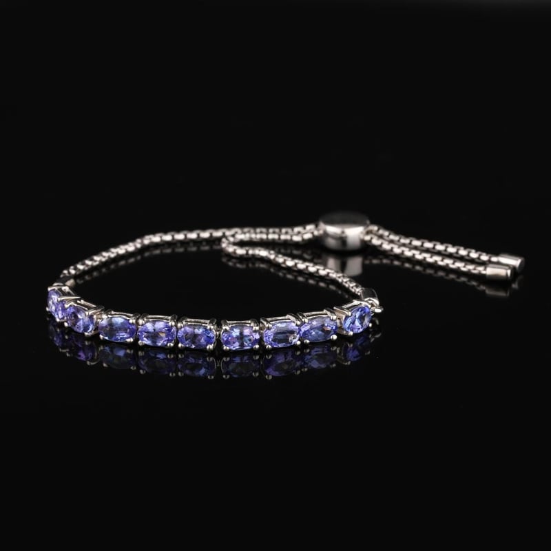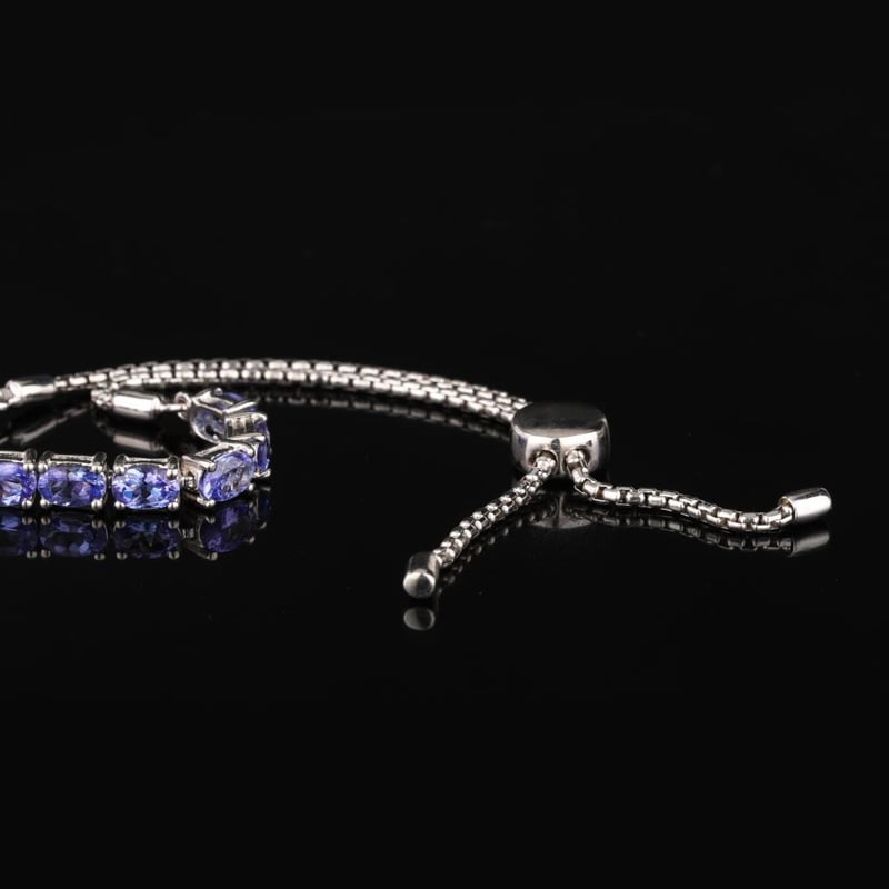 Lavender Tanzanite Oval Bracelet – A Touch of EleganceIndulge in the ethereal beauty of this exquisite Lavender Tanzanite Oval Bracelet, featuring nine meticulously selected oval gemstones, each measuring 6x4mm. The captivating lavender hue of the tanzanite exudes a soft, romantic charm, capturing the essence of twilight skies. Crafted with precision, this bracelet is designed not only for beauty but also for functionality, equipped with a secure slider lock that ensures a perfect fit on any wrist. The shimmering stones are artfully arranged to create a harmonious flow of color and light, making this piece a stunning addition to both casual and formal ensembles. Embrace the allure of this unique bracelet, as it effortlessly enhances your collection with its luxurious design and vibrant elegance. Whether worn alone or layered with other favorites, this Lavender Tanzanite bracelet is destined to become a cherished heirloom. Don’t miss the opportunity to own a piece that beautifully embodies sophistication and grace.