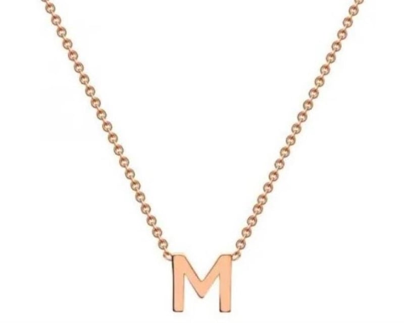 A 9CT ROSE GOLD INITIAL 'M' NECKLACE 38+5CM A 9Ct Rose Gold Initial 'M' Necklace 38+5Cm Condition: Good - Refer Images 0488821+131