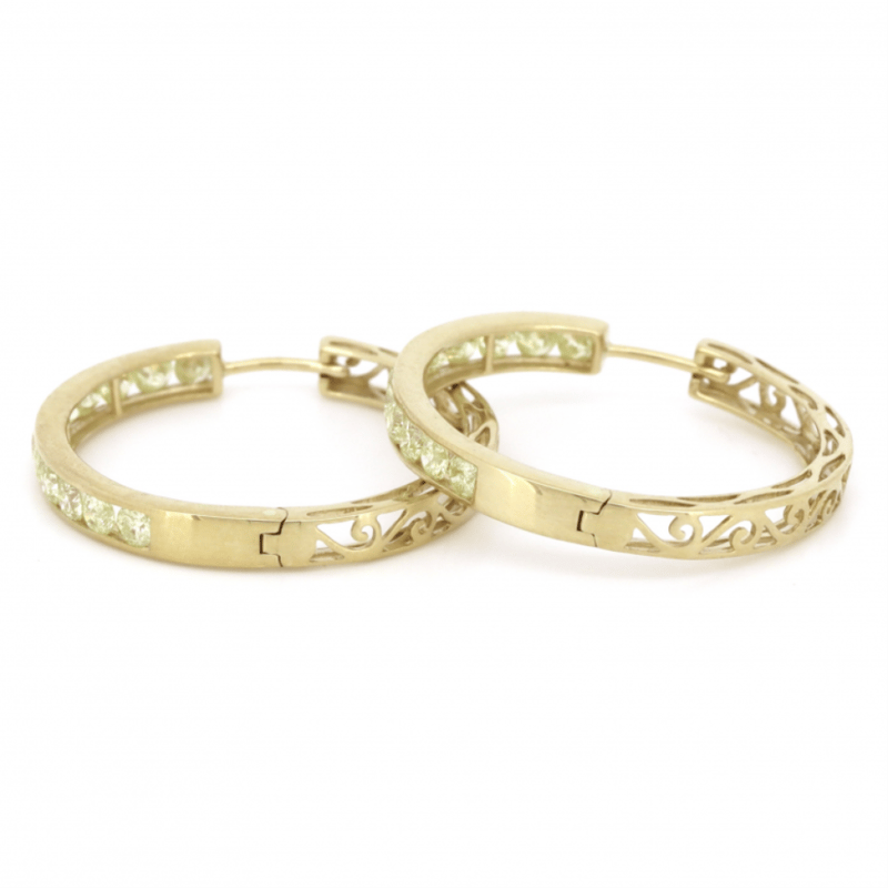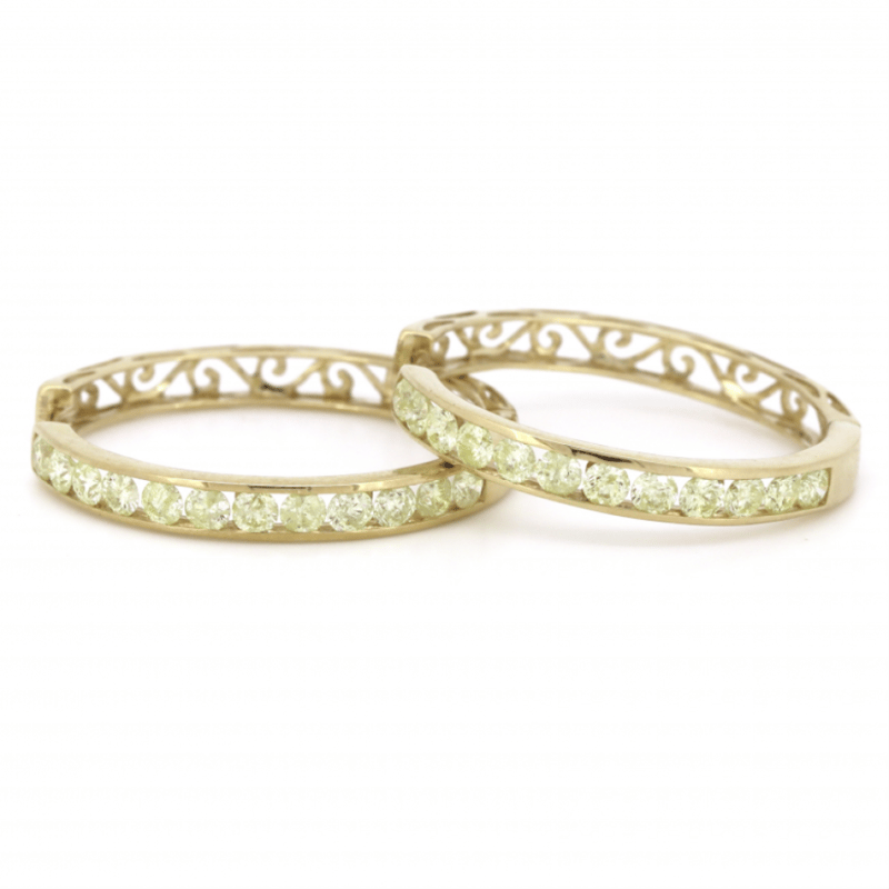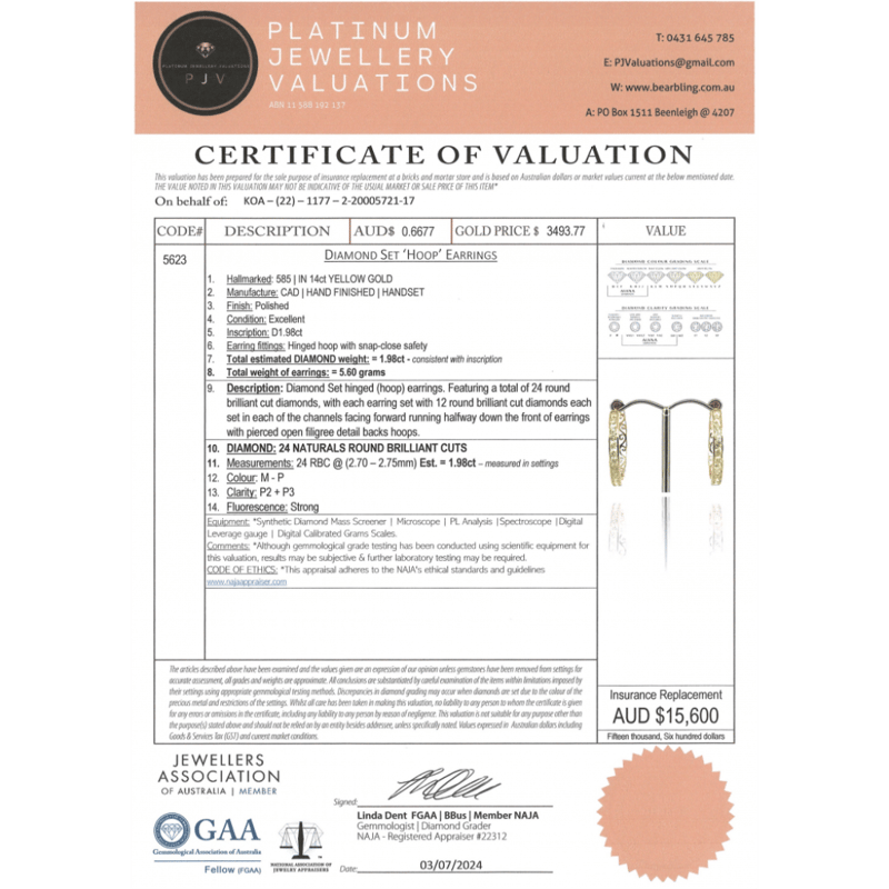 14K YELLOW GOLD, 1.98CT TDW DIAMOND, HOOP EARRINGS